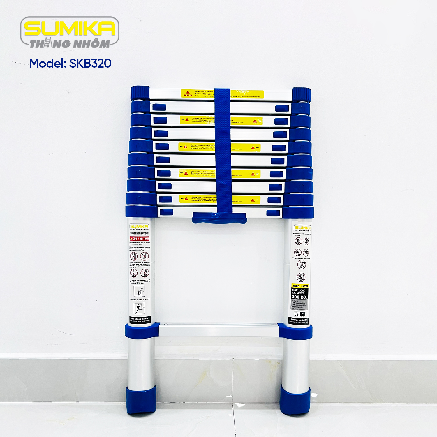 Thang nhôm rút gọn SUMIKA SKB320 - Chiều cao tối đa 3.2m, chiều cao rút gọn 0.78m, tải trọng 300kg