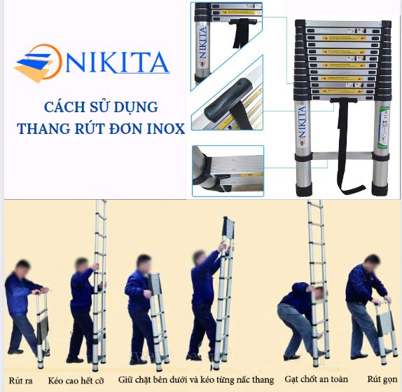 THANG NHÔM RÚT ĐƠN NIKITA THANG NHÔM RÚT ĐƠN NIKITA Mang những ưu điểm của dòng thang dã chiến theo bạn đi đến mọi nơi Trọng lượng nhẹ, kích thước gọn giúp bạn