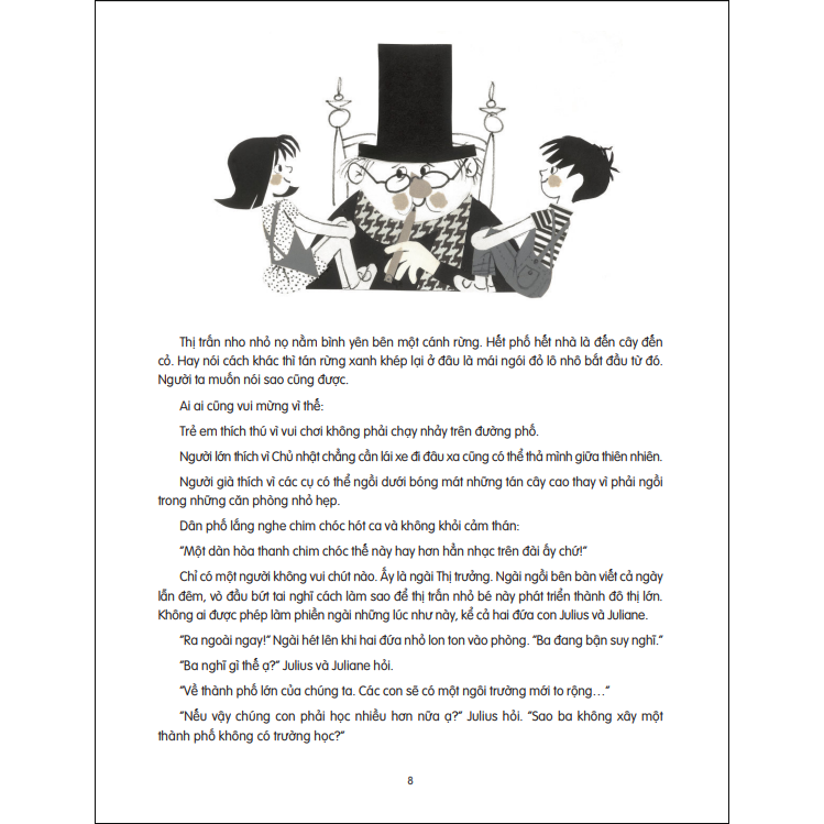 Vậy nhưng muôn loài động vật than khóc, trẻ nhỏ bực dọc và người già rầu rĩ. Bà tiên rừng Hullewulle cũng bất bình thay. Bà đã gieo những giấc mơ kì quái khiến ngài Thị trưởng sợ hãi, từ đó giúp ngài ngộ ra cách xây dựng thành phố mà không tổn hại đến rừng xanh.