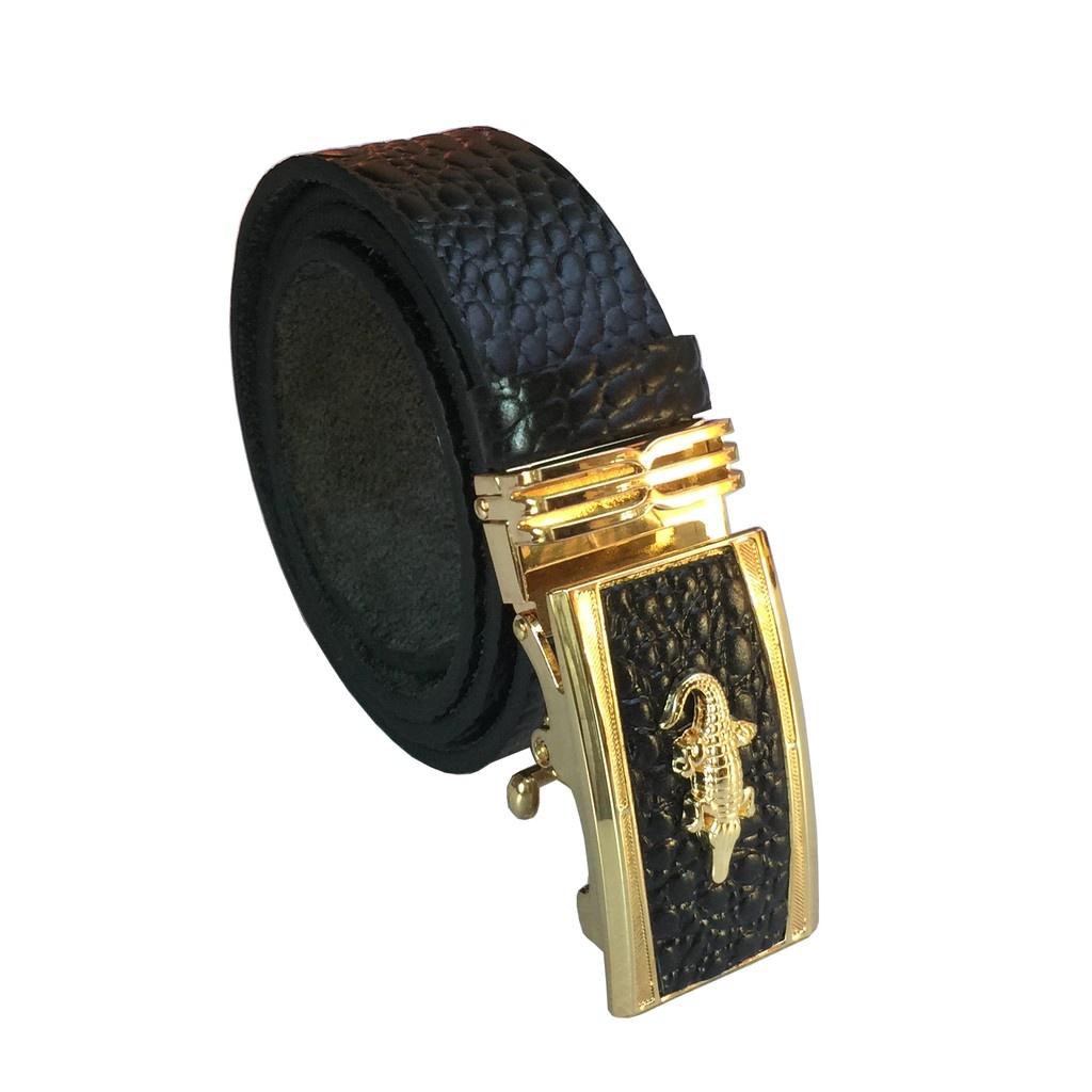 Thắt lưng nam da thật mặt khóa tự động bằng thép sáng bóng không gỉ