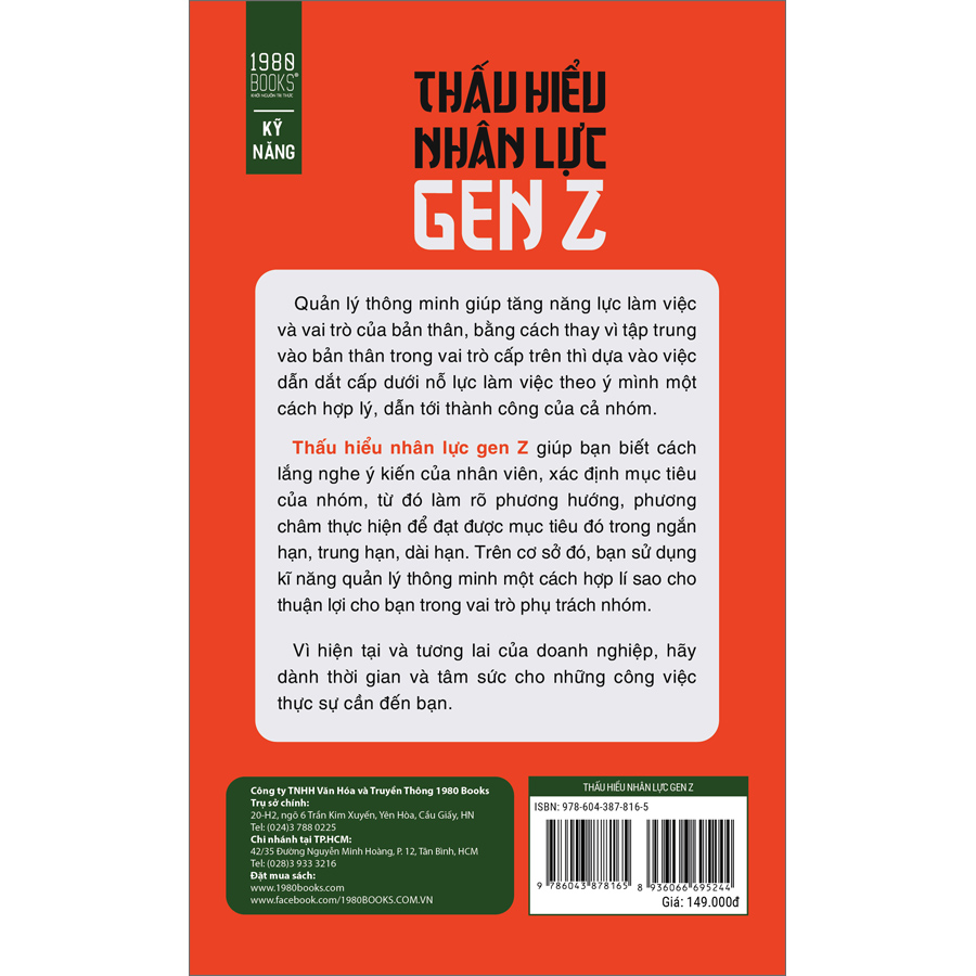 Cuốn sách « Thấu hiểu nhân lực gen Z » sẽ giúp bạn xác định mục tiêu của nhóm mà bạn quản lý là gì, từ đó làm rõ phương hướng, phương châm thực hiện để đạt được mục tiêu đó trong ngắn hạn, trung hạn, dài hạn, thực hiện chia sẻ quản lý tiến trình, và để tâm đến việc tạo động cơ động lực hướng đến hoàn thành mục tiêu. Trên cơ sở đó, bạn sử dụng kĩ năng quản lý thông minh một cách hợp lí sao cho thuận lợi cho bạn trong vai trò phụ trách nhóm.
