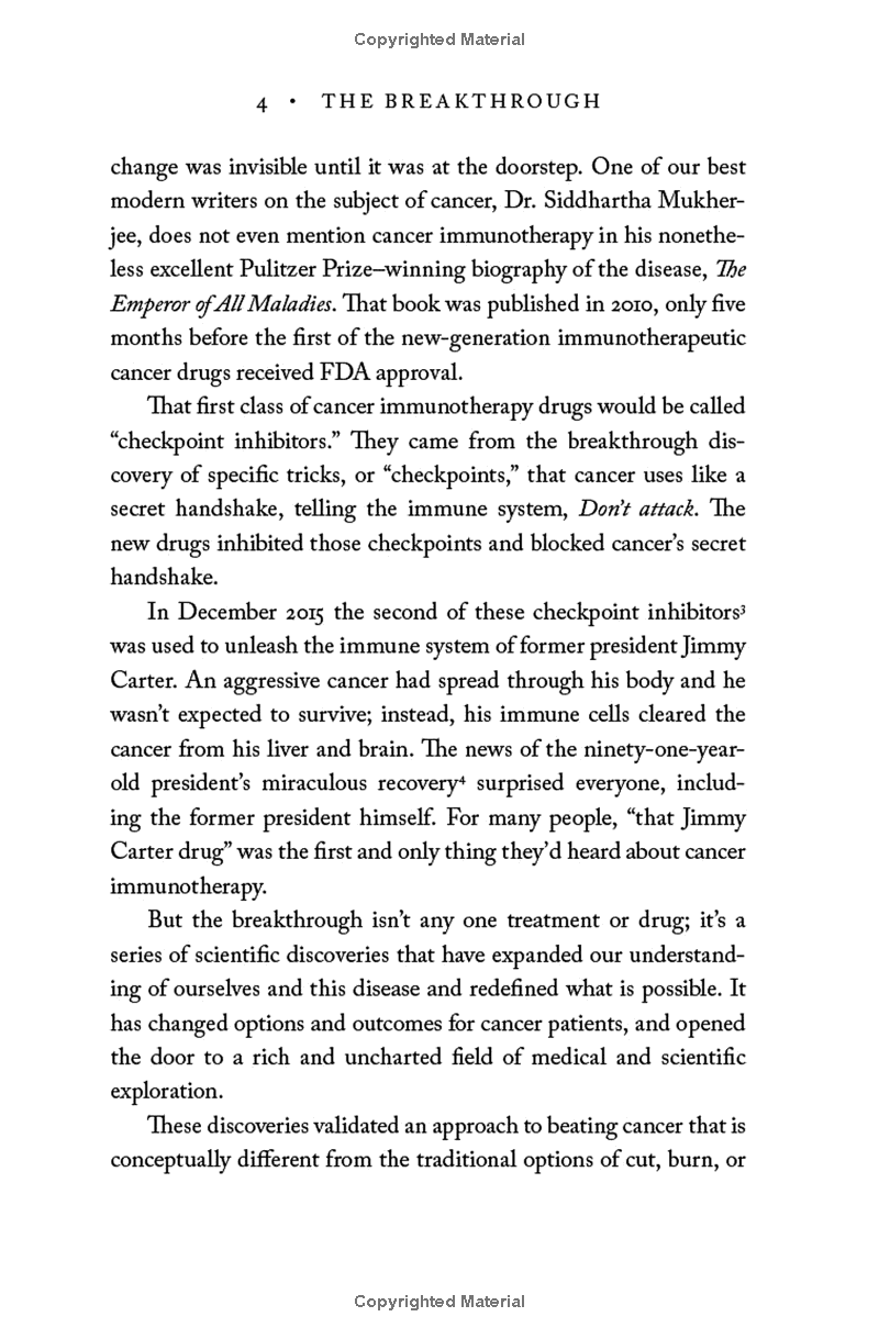 Groundbreaking, riveting, and expertly told, The Breakthrough is the story of the game-changing scientific discoveries that unleash our natural ability to recognize and defeat cancer, as told through the experiences of the patients, physicians, and cancer immunotherapy researchers who are on the front lines. This is the incredible true story of the race to find a cure, a dispatch from the life-changing world of modern oncological science, and a brave new chapter in medical history.