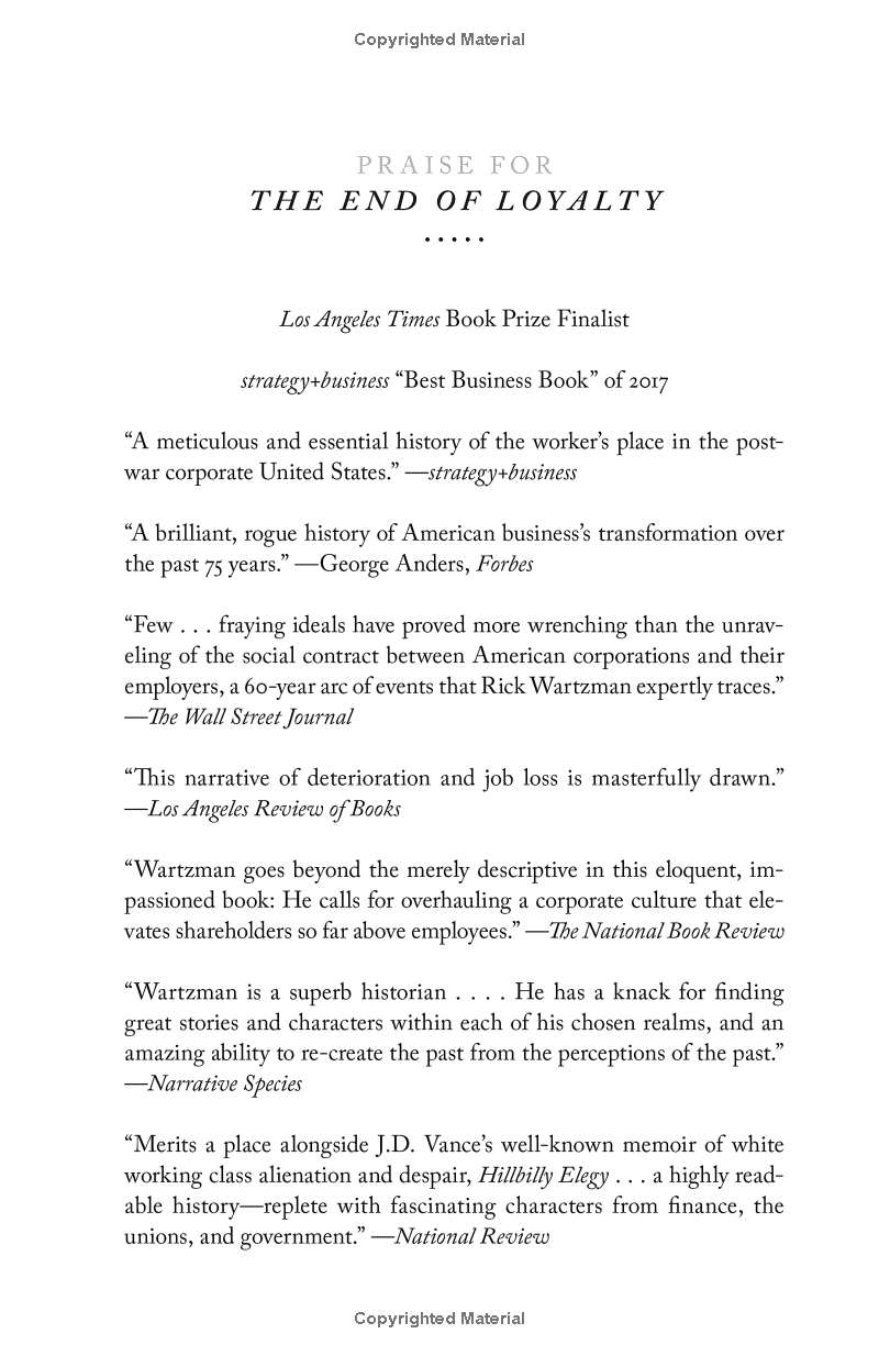 Deeply researched and compelling, The End of Loyalty will make you rethink how Americans can begin to resurrect the middle class.