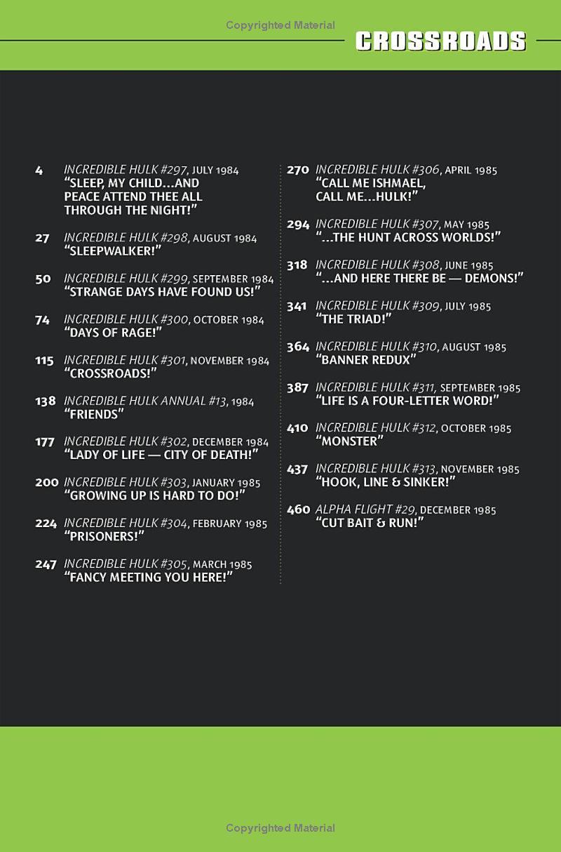 Bruce Banner is in charge — but for how long? After returning from the Beyonder’s Battleworld, Banner’s precarious hold on the Hulk’s savage persona has begun to slip, threatening to destroy the happiness he’s finally attained! And when the fighting-mad Hulk comes roaring back, it leads to a no-holds-barred battle against the entire Marvel Universe — and a shocking twist! Now, banished to the mysterious and deadly Crossroads dimension by Doctor Strange, a nearly mindless Hulk must claw his way back from the edge of insanity! As he battles the U-Foes, the N’Garai and a parade of ever more bizarre foes, the Hulk will confront aspects of his own fractured psyche. But how did Bruce’s tragic childhood shape the monster within?