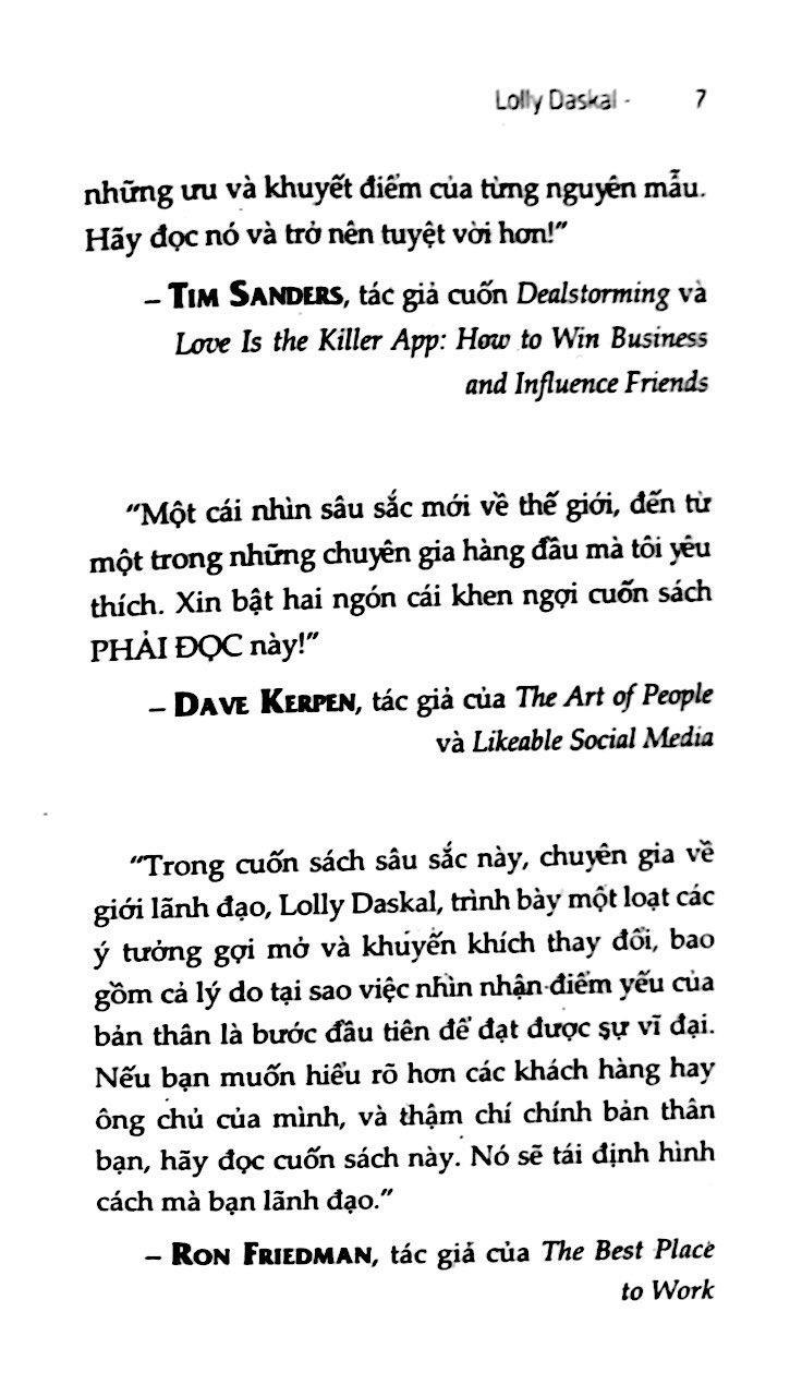 Đây là quan điểm đột phá của Lolly Daskal - một trong những nhà đào tạo lãnh đạo được săn đón nhiều nhất trên thế giới, người được Inc.com tôn vinh trong "Top 50 chuyên gia về quản trị và lãnh đạo hàng đầu", và là "Người phụ nữ truyền cảm hứng nhất trên thế giới" theo Huffington Post.