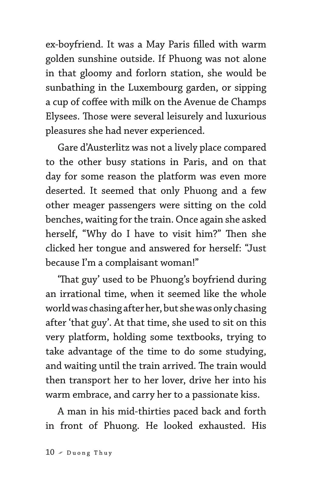 "France, for me, was not a simple country to visit. It was a place that always emotionally touched me whenever I returned, for I was able to speak the language I had learned during my childhood years, and to hug the dear French people who saw me as a family member. I had a love for France which I could not describe. I only knew that there was an invisible cord connecting my heart to that beautiful land. And, of course, the French people I've known for decades have a deep-down dear love for me, far beyond a normal friendship." - Duong Thuy