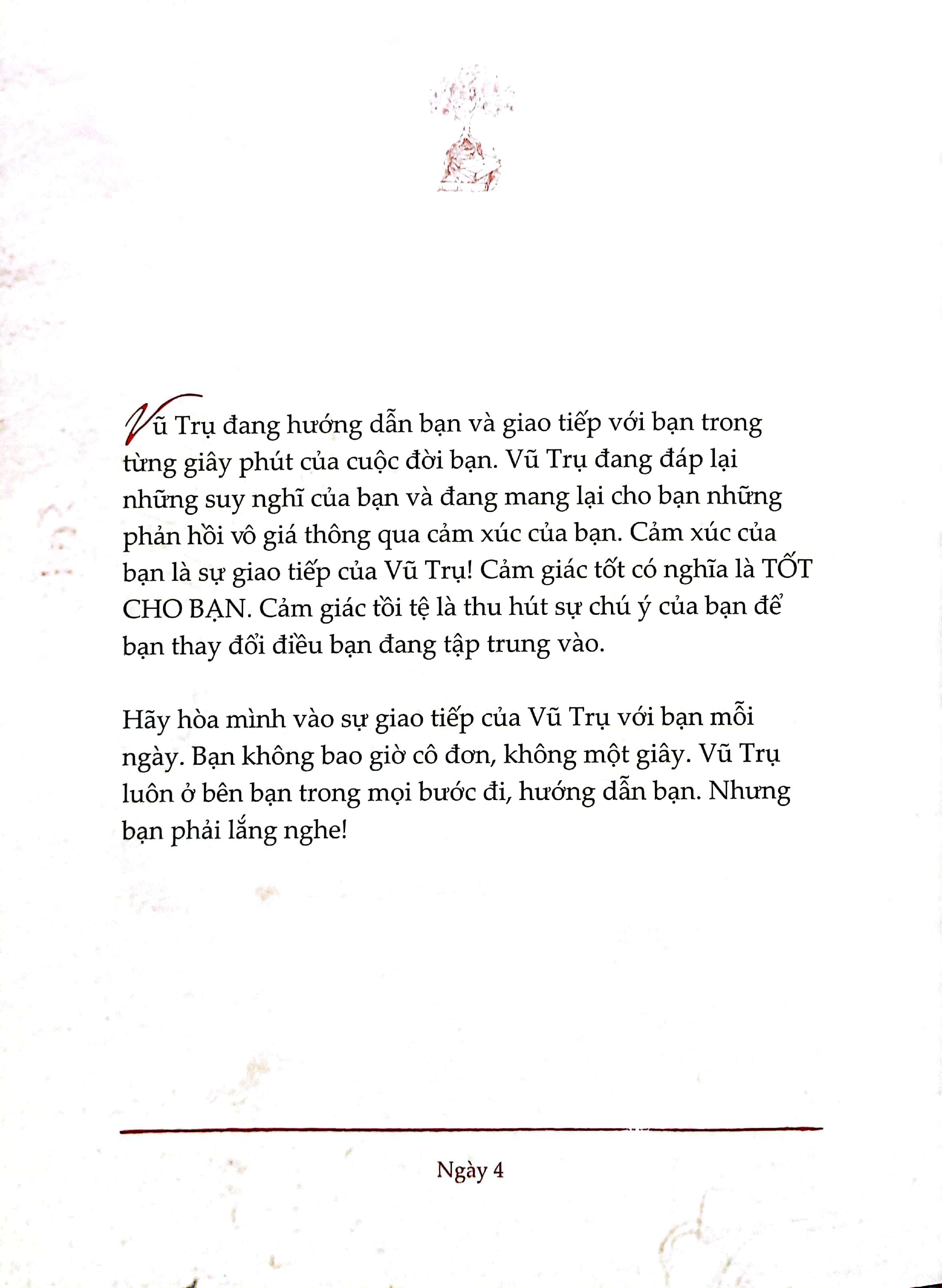 Vũ trụ đang hướng dẫn bạn và giao tiếp với bạn trong từng giây phút của cuộc đời bạn. Vũ trụ đang đáp lại những suy nghĩ của bạn và đang mang lại cho bạn những phản hồi vô giá thông qua cảm xúc của bạn. Cảm xúc của bạn là sự giao tiếp của vũ trụ . Cảm giác tốt có nghĩa là Tốt Cho Bạn. Cảm giác tồi tệ là thu hút sự chú ý của bạn để bạn thay đổi điều mà bạn đang tập trung….