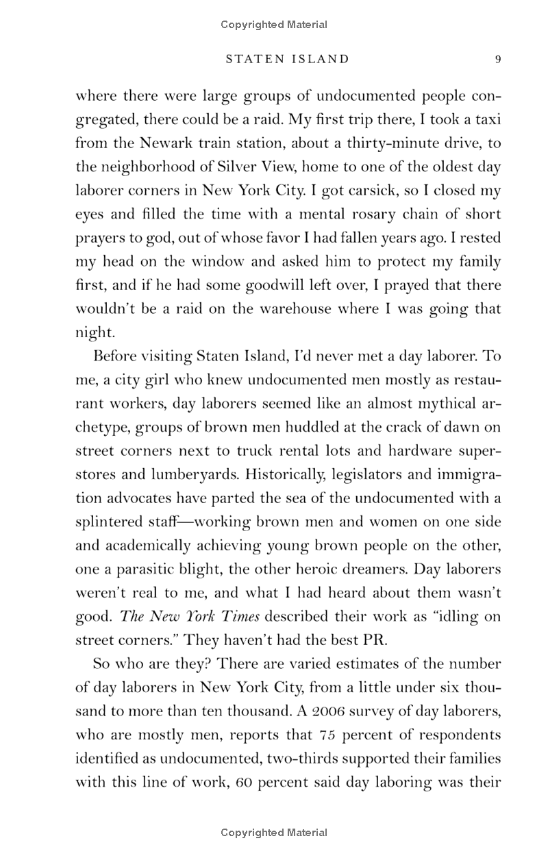 In New York, we meet the undocumented workers who were recruited into the federally funded Ground Zero cleanup after 9/11. In Miami, we enter the ubiquitous botanicas, which offer medicinal herbs and potions to those whose status blocks them from any other healthcare options. In Flint, Michigan, we learn of demands for state ID in order to receive life-saving clean water. In Connecticut, Cornejo Villavicencio, childless by choice, finds family in two teenage girls whose father is in sanctuary. And through it all we see the author grappling with the biggest questions of love, duty, family, and survival.