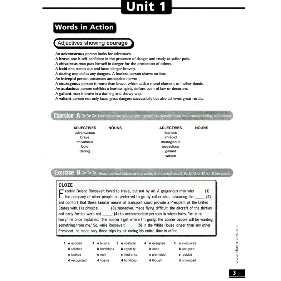 Sách gồm 15 bài học, với nhiều chủ đề đa dạng. Mỗi bài học gồm các bài tập liên quan đến việc sử dụng từ vựng một cách linh hoạt và chuẩn xác. Hệ thống