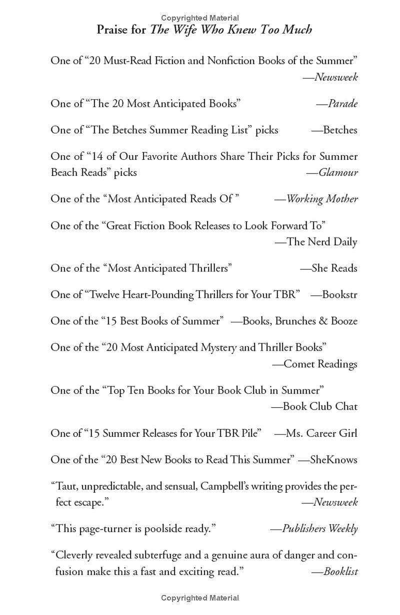 From Michele Campbell, the bestselling author of It's Always the Husband comes a new blockbuster thriller in The Wife Who Knew Too Much.