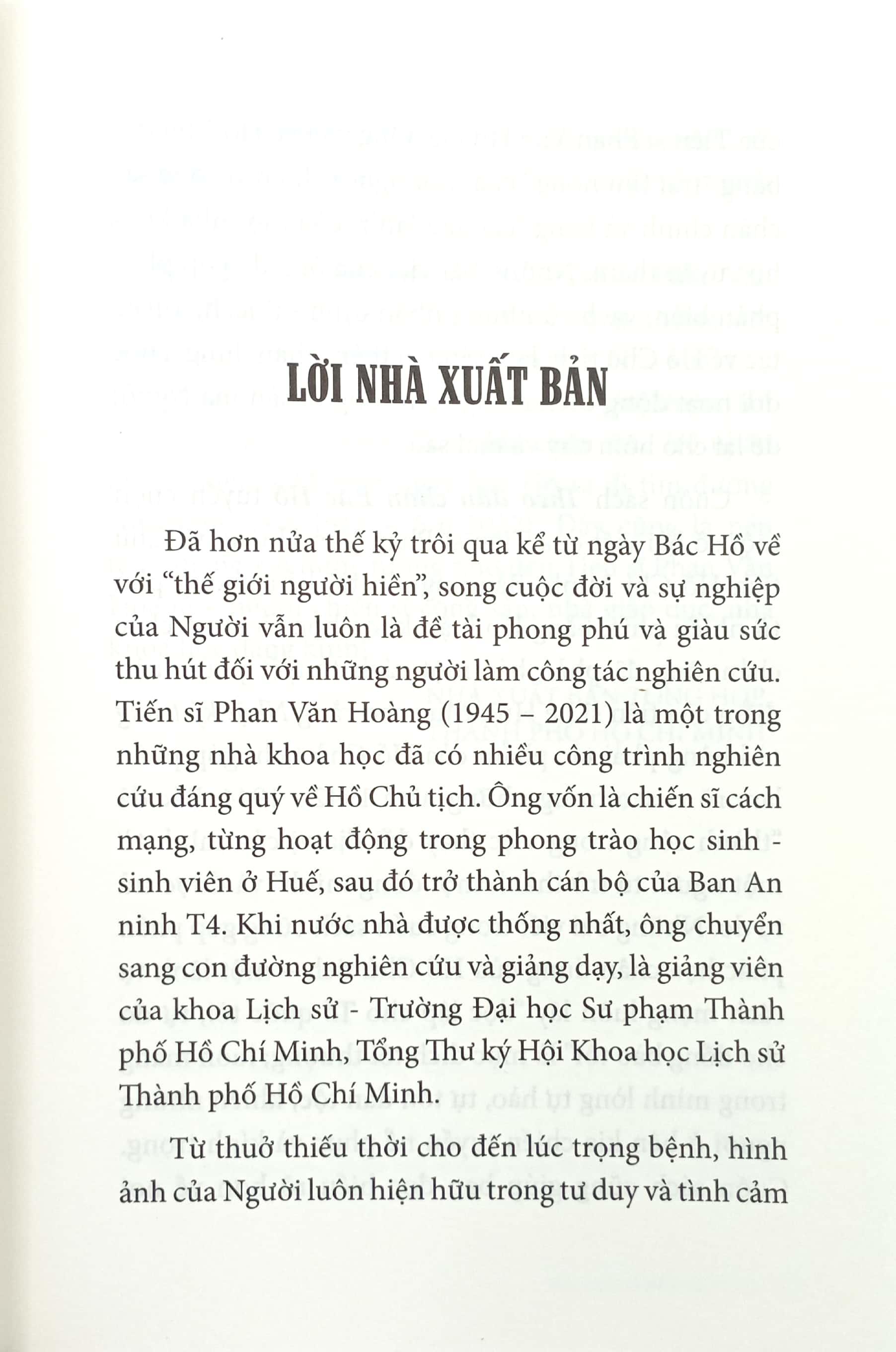 Cuốn sách THEO DẤU CHÂN BÁC HỒ tuyển chọn một số bài viết của Tiến sĩ Phan Văn Hoàng về Chủ tịch Hồ Chí Minh. Bằng nguồn tài liệu phong phú từ nhiều phía, bằng lập luận khoa học rõ ràng, chắc chắn, ông đã phản bác một cách thuyết phục luận điểm của Tiến sĩ Lê Hữu Mục cho rằng “Nhật ký trong tù” không phải tác phẩm của Hồ Chủ tịch; góp phần làm rõ vì sao trong những năm 1942 – 1944, Bác đã “thành công trong việc thay đổi địa vị của m.ình từ một người tù trở thành một đồng minh” và được trả tự do. Những bài viết trong cuốn sách cũng góp phần phác họa chân dung của Hồ Chủ tịch – một lãnh tụ cách mạng luôn lấy “độc lập cho Tổ quốc tôi, tự do cho đồng bào tôi” là mục đích tối thượng; luôn mang trong m.ình lòng tự hào, tự tôn dân tộc; khiến những người ở bên kia chiến tuyến nể phục và kính trọng. Cuốn sách cũng giúp bạn đọc hiểu rõ hơn về nơi Bác Hồ đã xuống tàu để ra đi tìm đường cứu nước; về những mốc thời gian mà Sài Gòn – Gia Định mang tên lãnh tụ Hồ Chí Minh…
