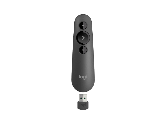 R500s là điều khiển trình chiếu từ xa đơn giản - do vậy bạn có thể tập trung vào việc truyền tải thông điệp. Thiết kế ba nút không thể nhầm lẫn của R500s giúp bạn có thể điều hướng trên các slide trình chiếu dễ dàng và tự tin mà không cần phải nhìn xuống để di chuyển ngón tay. Kết nối R500s với máy tính thông qua đầu thu USB hoặc Bluetooth công nghệ tiết kiệm năng lượng. Sau đó di chuyển và trình chiếu tự do từ khoảng cách lên tới 20m 5Có thể thay đổi tùy theo điều kiện môi trường và mức sử dụng. Điều khiển Trình chiếu Laze từ xa R500s đã được thiết kế để vừa khít với lòng bàn tay bạn, và bề mặt bằng cao su mềm cùng các nút có hoa văn của nó cho phép cầm nắm tự tin trong khi thuyết trình.