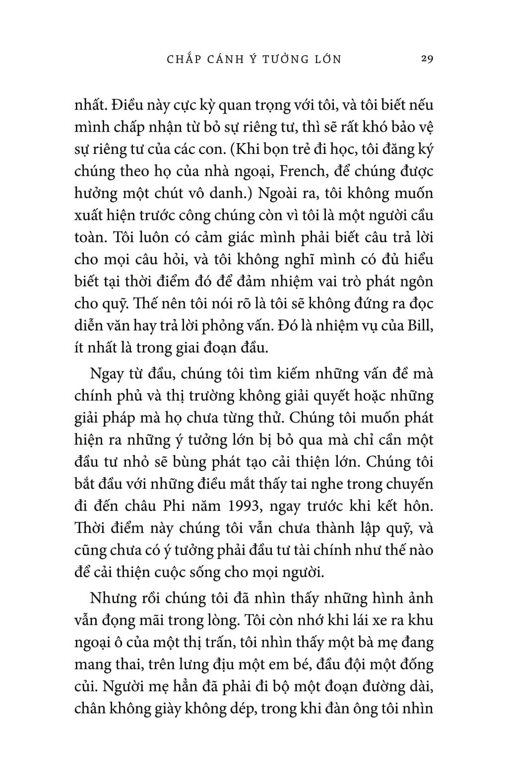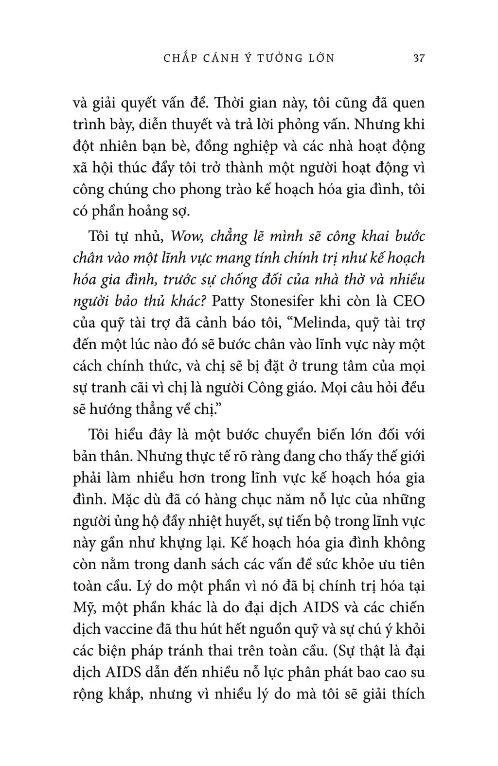 Câu chuyện khó quên của Melinda được hỗ trợ bởi những dữ liệu đáng kinh ngạc khi bà trình bày những vấn đề mà chúng ta cần phải quan tâm - từ tảo hôn, đến sự thiếu tiếp cận với các biện pháp tránh thai cho đến bất bình đẳng giới tại nơi làm việc. Và, lần đầu tiên bà viết về cuộc sống cá nhân và con đường dẫn đến bình đẳng trong hôn nhân của chính m.ình.