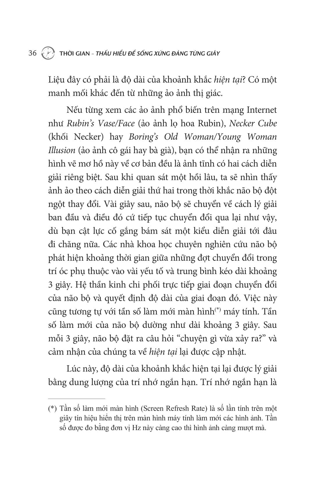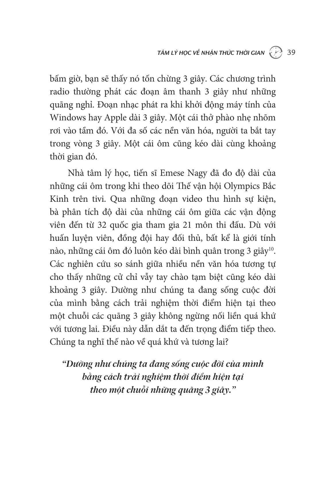 Thời Gian - Thấu Hiểu Để Sống Xứng Đáng Từng Giây Mỗi ngày đều là ngày đầu tiên trong phần đời còn lại, nên bạn vẫn có thể làm cho nó trở nên đáng giá nhất. Để có được cảm giác như thể chúng ta đã sống một cuộc đời dài lâu và viên mãn, chúng ta hãy không ngừng hướng đến mục tiêu lấp đầy thời gian vô cùng quý báu của mình bằng những trải nghiệm đầy sôi nổi và hấp dẫn để khiến mỗi giây phút đều đáng giá, ở mọi thời điểm của cuộc đời, dù cho đó là giây phút cuối cùng. Chẳng ai gột tả điều này hay hơn nhà thơ xứ Wales Dylan Thomas: “Đừng bước nhẹ nhàng vào cơn ngủ say. Điên cuồng, điên cuồng lên chống lại sự chết dần của ánh sáng soi”. Một khi thời gian của bạn cạn kiệt và bạn nhìn lại cuộc đời mình đã sống, mong là bạn sẽ không phải cảm thấy mới ngày nào mình chỉ 20 tuổi rồi tự hỏi làm thế nào vài thập kỷ đã vội trôi qua trong nháy mắt. Thay vào đó, bạn có thể phát lại trong đầu mình một bộ phim với vô vàn kỷ niệm đẹp đẽ, từ những hành trình đầy cảm xúc đến những nơi hay ho bạn ghé thăm cùng những con người thú vị bạn đã gặp, cũng như tất cả kiến thức mà bạn góp nhặt suốt chặng đường ấy. Khoảnh khắc đó, thay vì nhìn thấy cuộc đời lỏe lên trước mắt mình, bạn sẽ vô cùng mãn nguyện khi chứng kiến nó mở ra đầy thanh bình, rồi thích thú với cảm giác hài lòng khi có thể gói ghém nhiều cuộc đời trong một cuộc đời duy nhất – cuộc đời của chính mình! Vậy làm thế nào chúng ta có thể tận dụng thời gian của mình? Làm sao để ta sống thật trọn vẹn và thấy hài lòng vì quãng thời gian trong đời mình đã được sử dụng hợp lý? Đó là lý do để bạn đọc Thời gian – Thấu hiểu để sống xứng đáng từng giây!
