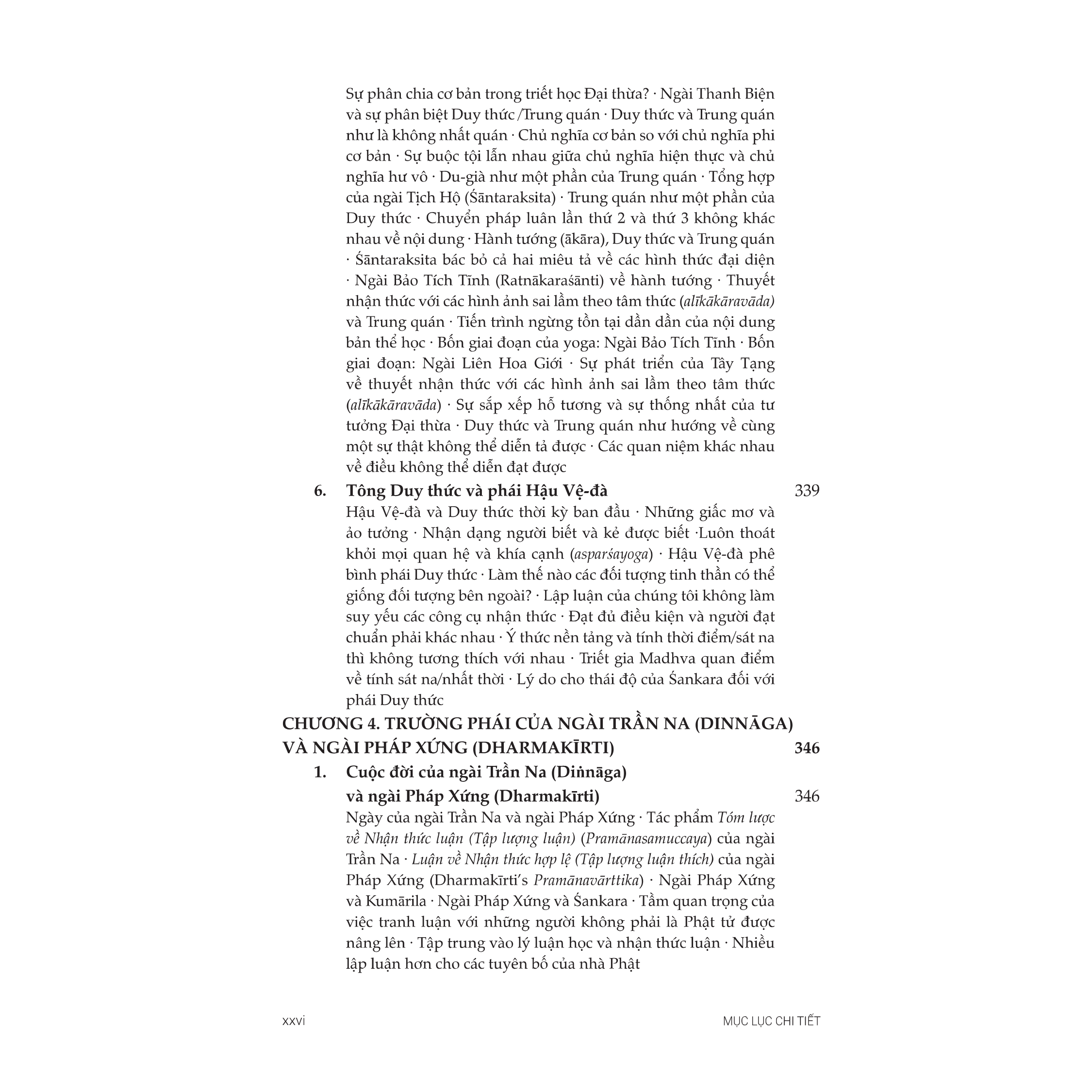 Không chỉ tập trung vào giai đoạn trước thế kỷ thứ sáu, tác phẩm còn đề cập đến những nhà tư tưởng chính đã ảnh hưởng đến triết học Phật giáo cho đến khi hệ thống triết học kinh viện của Phật giáo ở Ấn Độ suy thoái vào đầu thế kỷ 13. Mục tiêu của Westerhoff là tạo ra một bức tranh lịch sử phong phú, giúp người đọc hiểu rõ hơn và hệ thống hóa những khái niệm cốt yếu của triết học Phật giáo.