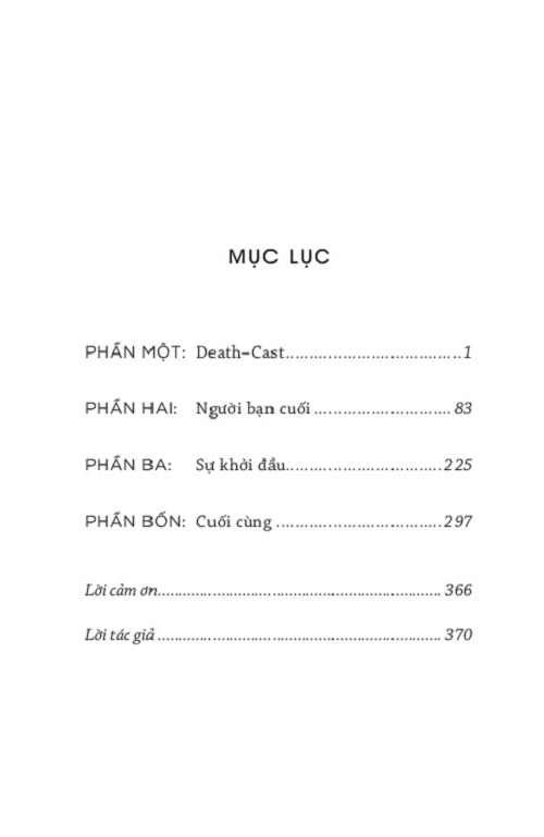 “Chào bạn, tôi đang gọi cho bạn từ DeathCast. Tôi rất tiếc phải báo với bạn rằng một thời điểm nhất định trong vòng hai mươi tư giờ tiếp theo bạn sẽ qua đời.”