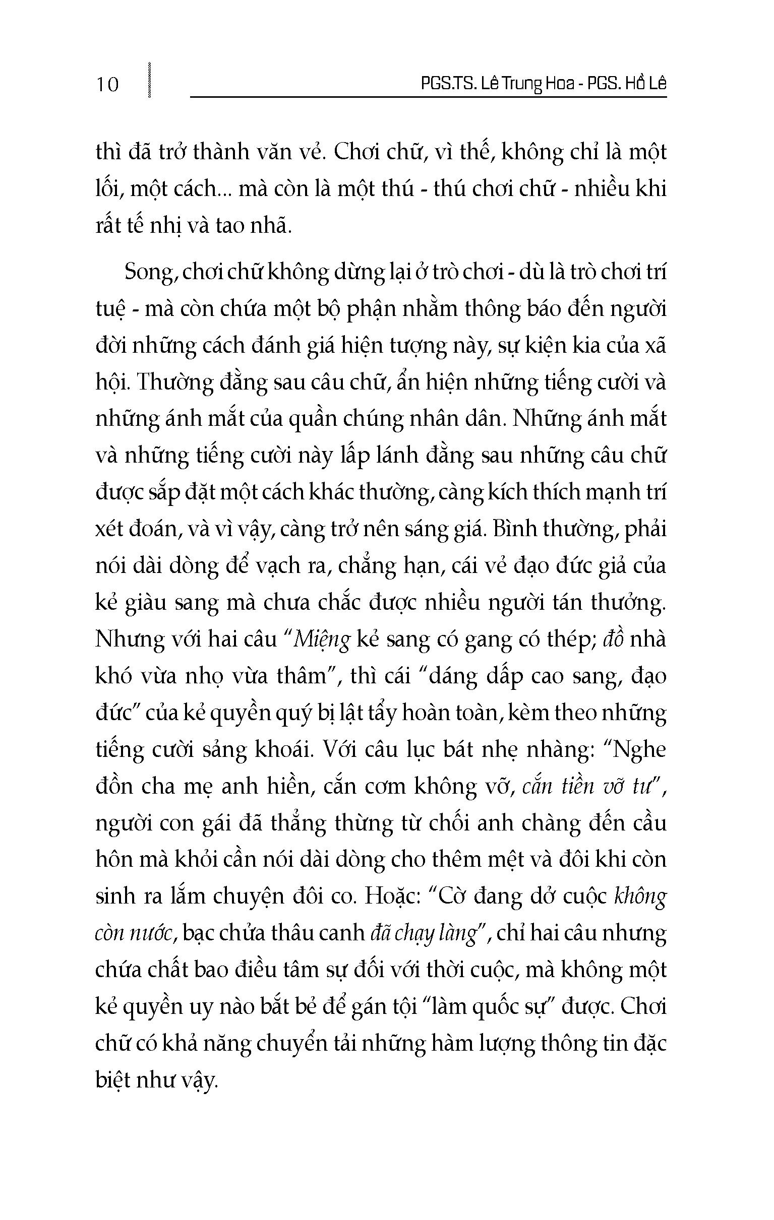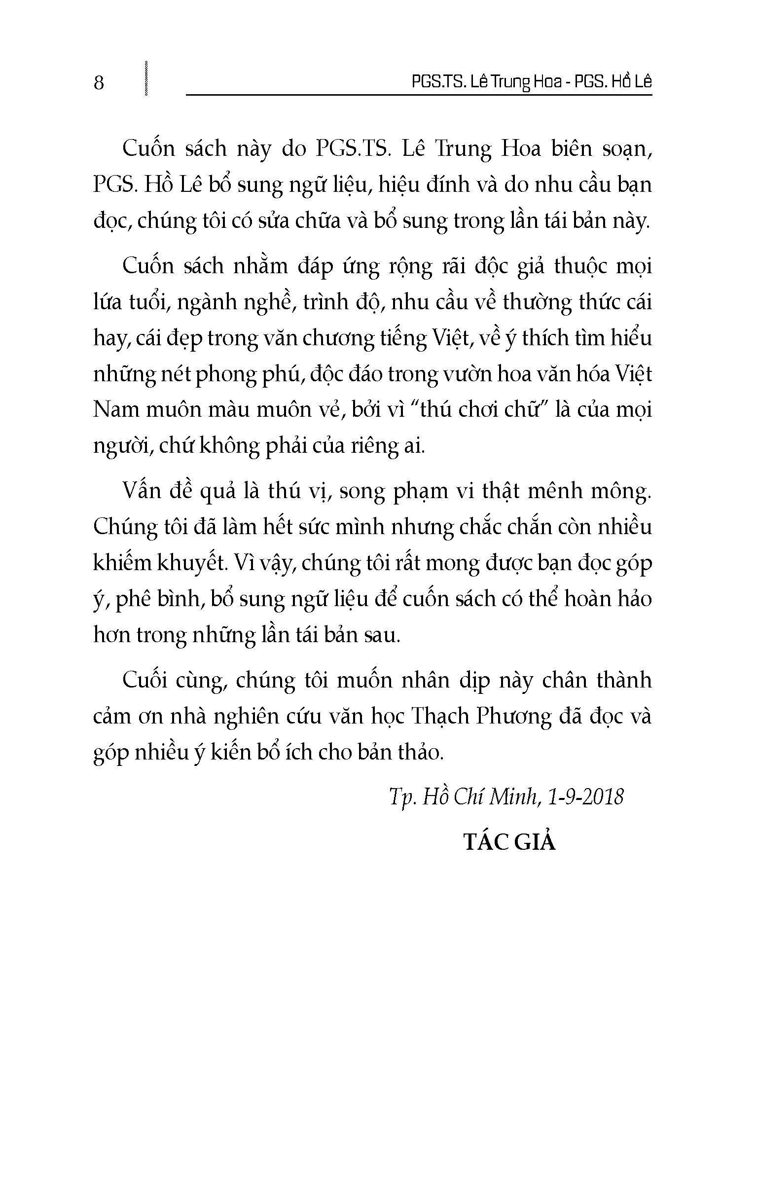 Cuốn sách Thú Chơi Chữ do PGS.TS. Lê Trung Hoa biên soạn, PGS. Hồ Lê bổ sung ngữ liệu, hiệu đính và do nhu cầu bạn đọc, chúng tôi có sửa chữa và bổ sung trong lần tái bản này.