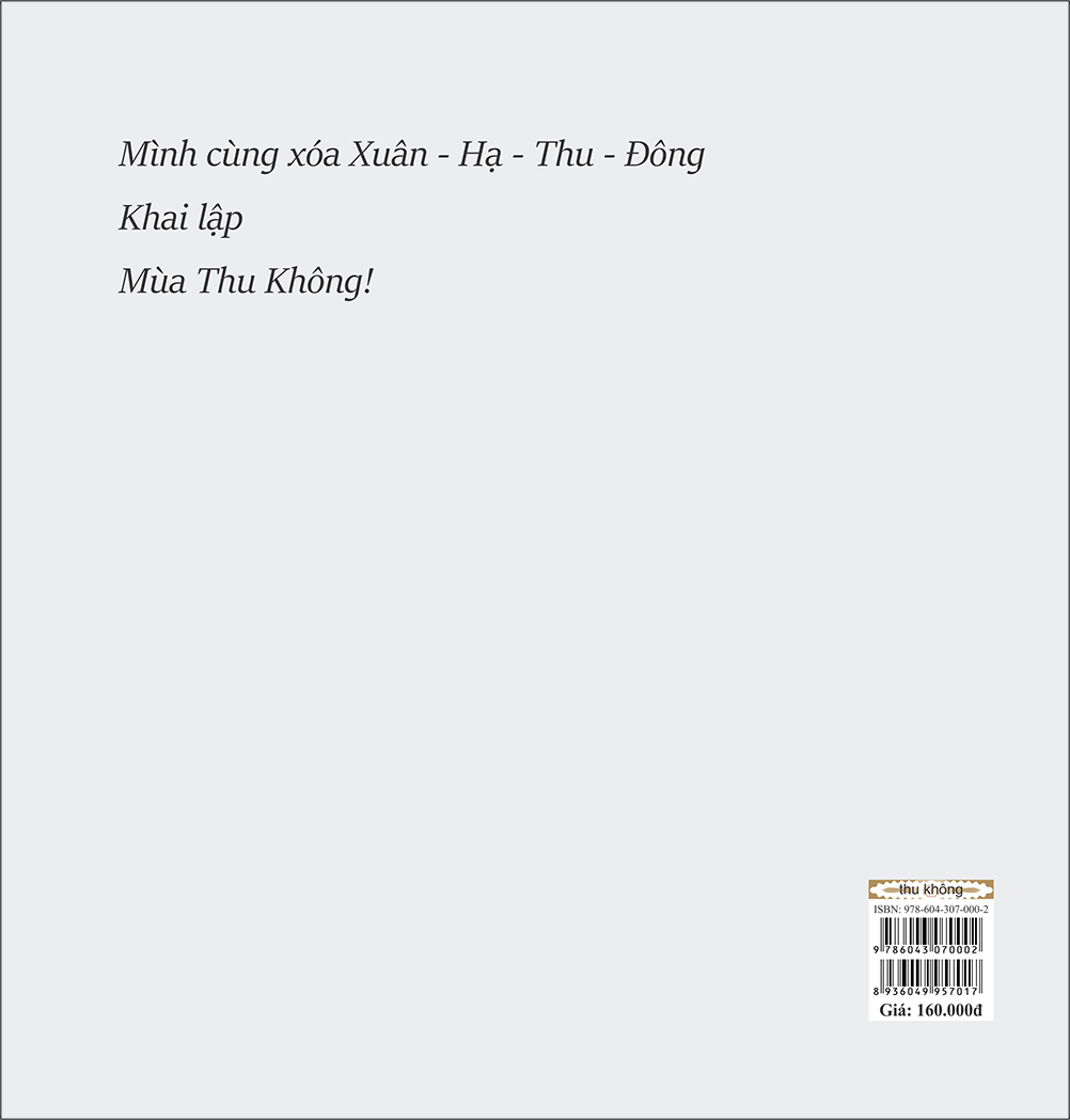 "Tác giả Đoàn Ngọc Thu tốt nghiệp Khoa Ngữ văn trường ĐHTH, Khoa Báo chí trường ĐHTH, hiện làm báo tại Thông tấn xã Việt Nam từ năm 1995 đến nay. Các tập thơ của chị đã in: Thầm thì sông trăng (1992), Khúc hoang tưởng chiều mưa (1998), Muộn (2001), Quá giang (2005), Vé một lượt (2013), Sau bão (2020), Thu không (2020)
