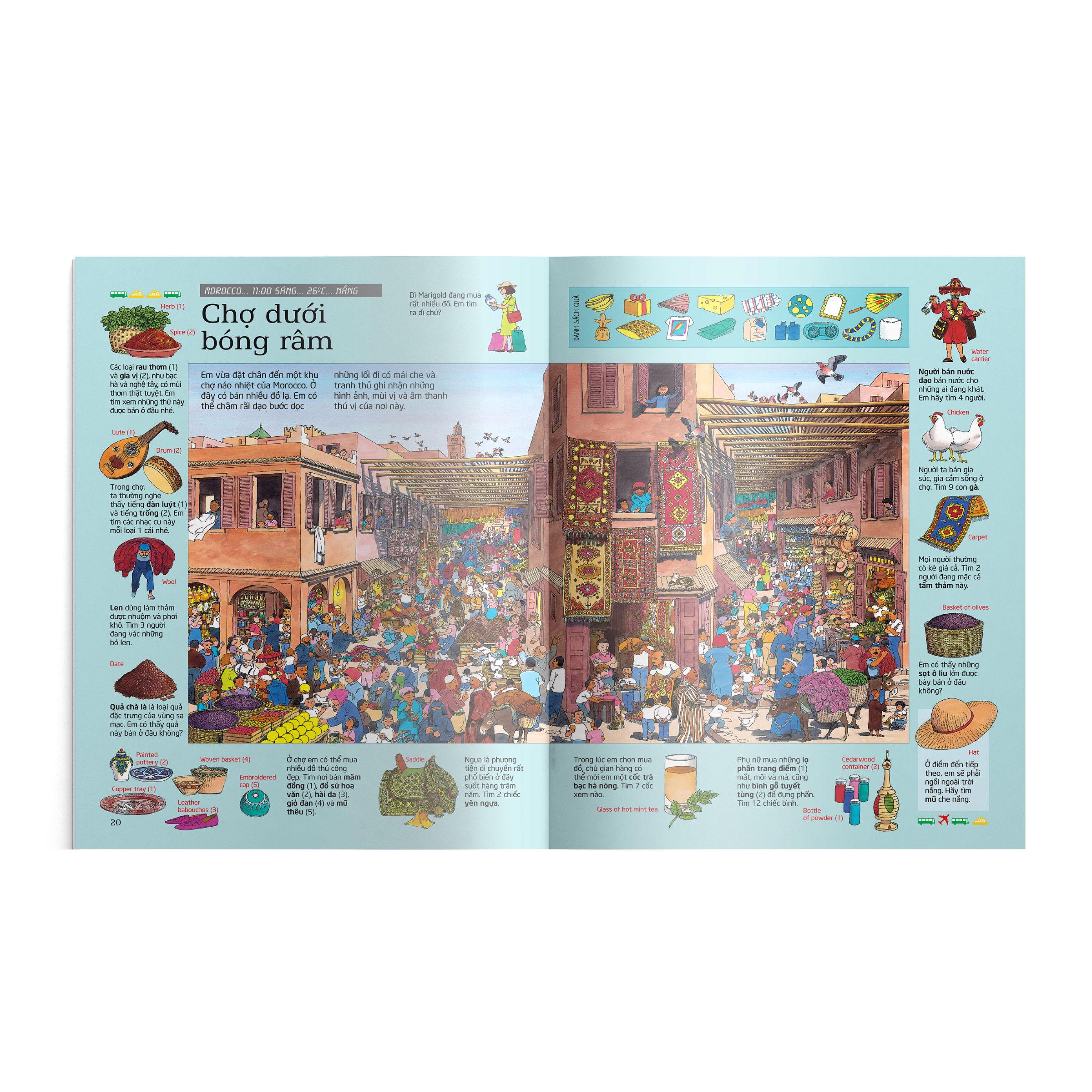 Mua tại TiktokThử tài tìm kiếm – Thế giới Dì Marigold tặng em một món quà đặc biệt: tấm vé du lịch vòng quanh tế giới. Trong chuyến đi, sẽ có những thử thách yêu cầu em tìm kiếm nhiều thứ và phát hiện ra điểm đến tiếp theo. Không chỉ mang đến nhiều giờ giải trí thú vị, Thử tài tìm kiếm – Thế giới còn chứa đựng vô vàn thông tin hấp dẫn về các dân tôc và xứ sở trên thế giới .