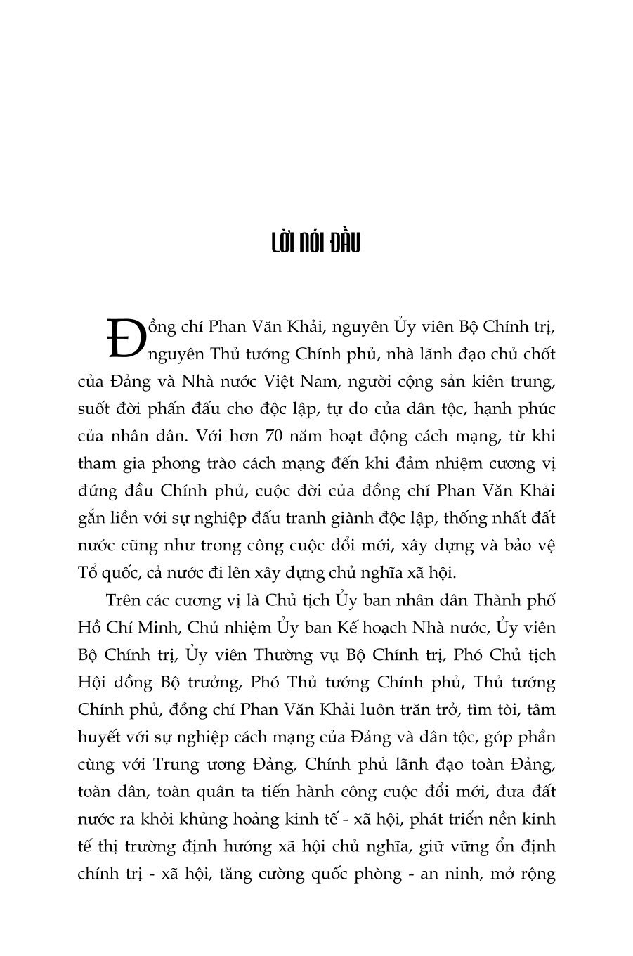 Cuốn sách gồm 3 phần, tuyển chọn những bài phát biểu, bài viết, báo cáo, văn bản chỉ đạo, góp ý, bút tích phê duyệt, của đồng chí Phan Văn Khải trên cương vị là Phó Chủ tịch Hội đồng Bộ trưởng, Phó Thủ tướng Chính phủ, Thủ tướng Chính phủ trong khoảng thời gian từ năm 1992 đến năm 2006. Các bài viết tập trung vào các lĩnh vực kinh tế, văn hóa, xã hội, ngoại giao, được tập hợp theo chủ đề và trình tự thời gian, diễn biến của sự việc, sự kiện. Các tài liệu được công bố toàn văn hoặc lược trích, chú giải rõ nguồn.