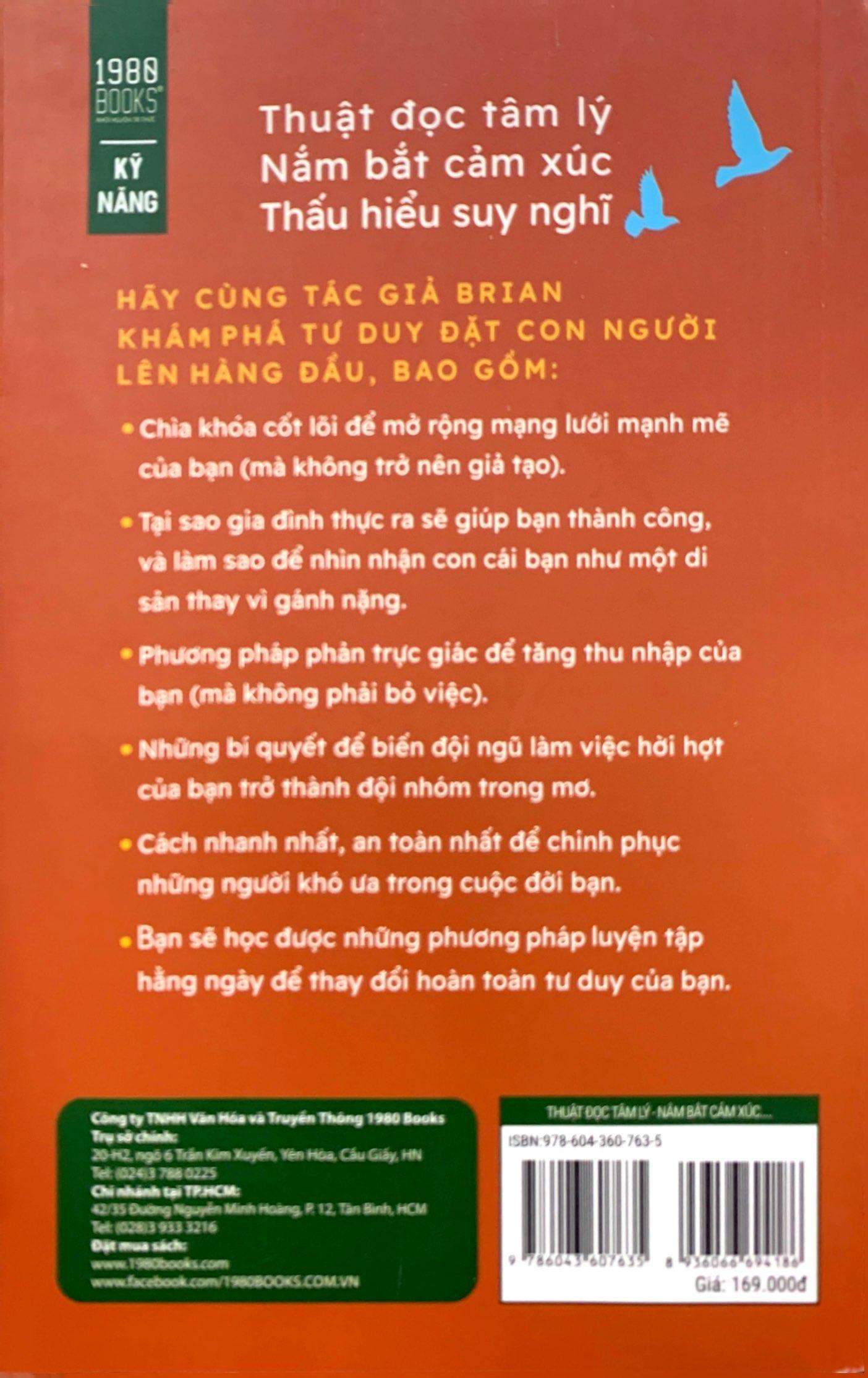Mua tại TiktokSau khi thất bại trong nhiều mối quan hệ và dự án, Brian Dixon quyết tâm khám phá bí quyết để hạnh phúc trong công việc mà sống một cuộc đời có ý nghĩa. Trong Khéo léo đối nhân, được lòng thiên hạ, Brian trao cho bạn chiếc chìa khoá quan trọng nhất để hạnh phúc trong các mối quan hệ của bạn và mở cánh cửa đến mục tiêu, đam mê, và lợi nhuận. Sự thật là, bạn không tự mình đạt được ước mơ. Bạn cần những người xung quanh. Và họ cũng cần bạn. “Thuật đọc tâm lý, nắm bắt cảm xúc, thấu hiểu suy nghĩ’’ là cuốn sách hướng dẫn đầy đủ để giúp bạn tận dụng nguồn tài nguyên quan trọng nhất để thành công trong kinh doanh và cuộc sống. =>> Hãy cùng tác giả Brian khám phá tư duy đặt con người lên hàng đầu, bao gồm:
