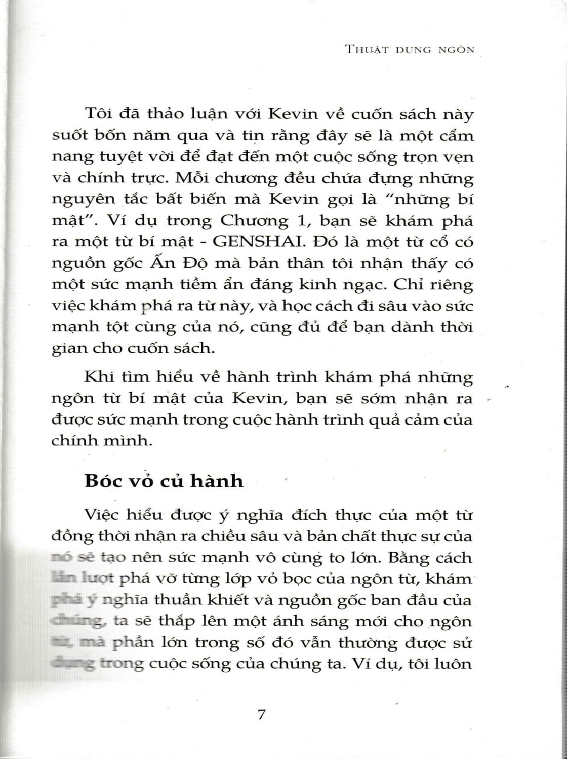 Thuật Dụng Ngôn, tựa cũ “Sức mạnh bí ẩn của 11 câu thần chú” được xem là một trong những cuốn sách về kỹ năng sống hay nhất. Quyển sách được chia thành 11 chương với 11 từ cốt lõi, và bạn có thể đọc đi đọc lại nhiều lần để trau dồi quá trình thay đổi hành vi lâu dài. Mô hình và bố cục của các chương phản ánh nền tảng kiến thức và kinh nghiệm của tác giả trong quá trình đào tạo và phát triển con người suốt hai mươi lăm năm qua. Năm chương đầu sẽ bàn về quá trình phát triển cá nhân – cách sử dụng sức mạnh bí ẩn của ngôn từ để tìm thấy con đường và mục đích của riêng bạn. Chương giữa có vai trò độc lập bởi đó là chủ đề trọng tâm của toàn bộ cuốn sách. Từ cốt lõi của nó là “humility”, tức sự khiêm tốn, một đặc điểm có sức ảnh hưởng mạnh mẽ mà tôi xem như “khởi nguồn của mọi đức hạnh” vì nó là yếu tố mấu chốt cho quá trình phát triển và hoàn thiện không ngừng. Năm chương cuối bàn về việc dẫn dắt người khác, bao gồm ngôn ngữ về vai trò lãnh đạo: nó không nói về bạn, nó nói về người khác.