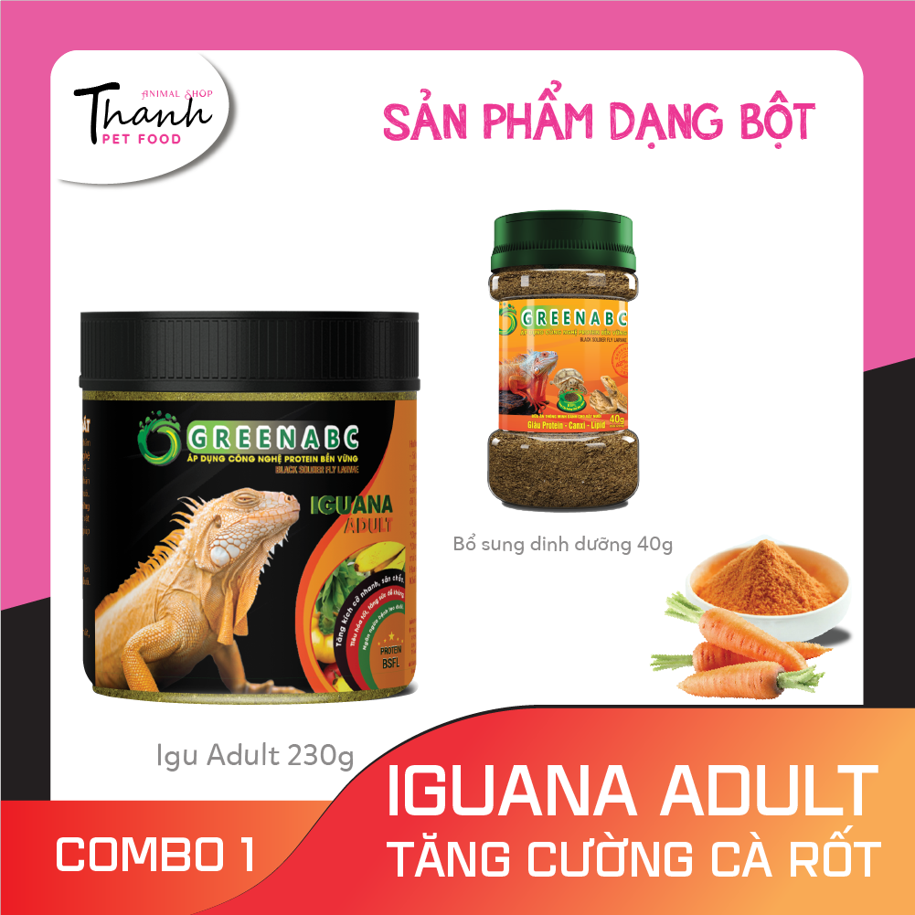 ✨Thức ăn bò sát Iguana Trưởng Thành nhãn GREENABC vị cà rốt dùng cho Iguana từ 1m trở lên – Gai bung, gù cao, dáng đẹp, lên màu tươi - Hộp 230g