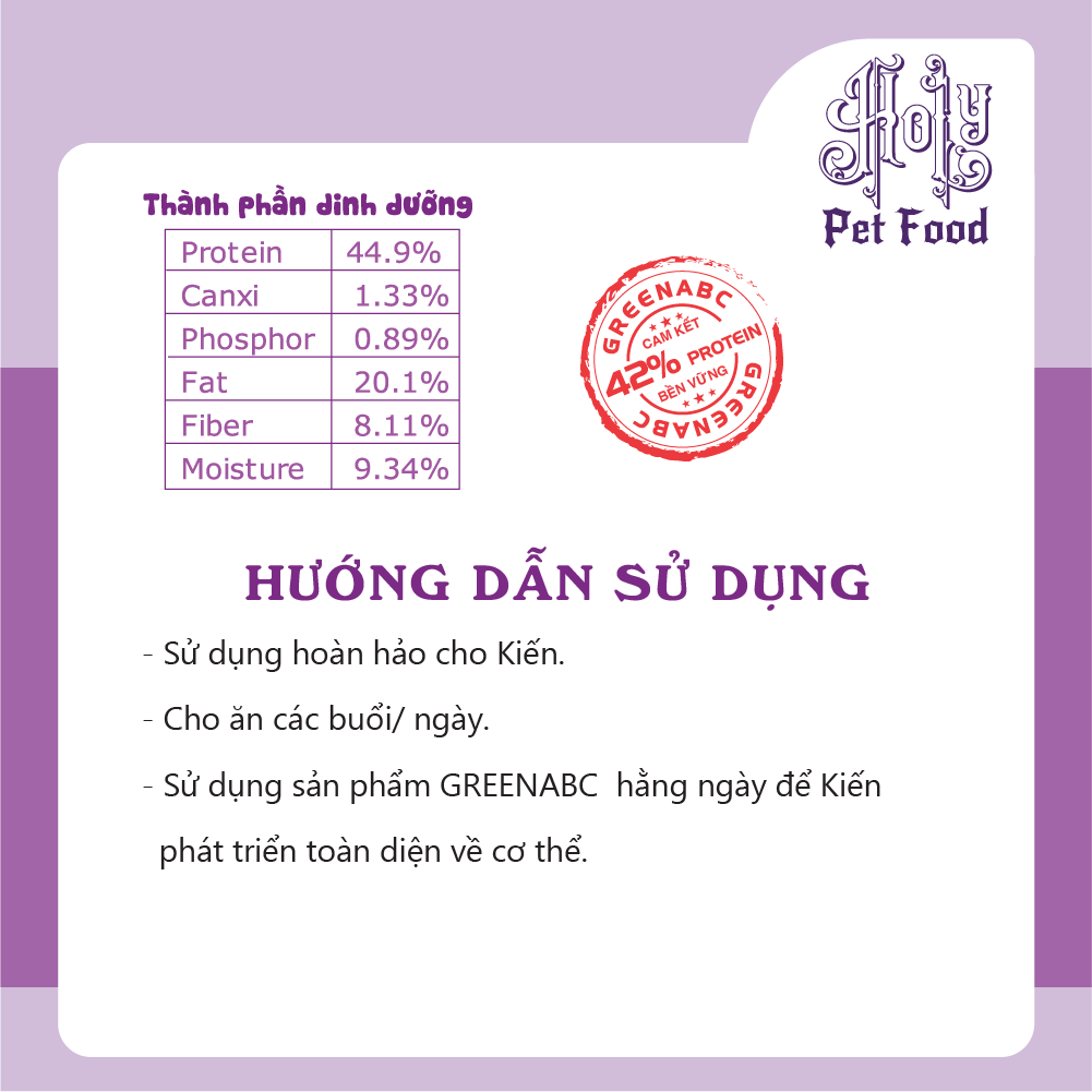 GREENABC - THỨC ĂN DÀNH CHO các loại KIẾN - BỔ SUNG DINH DƯỠNG PROTEIN - CANXI - LIPID