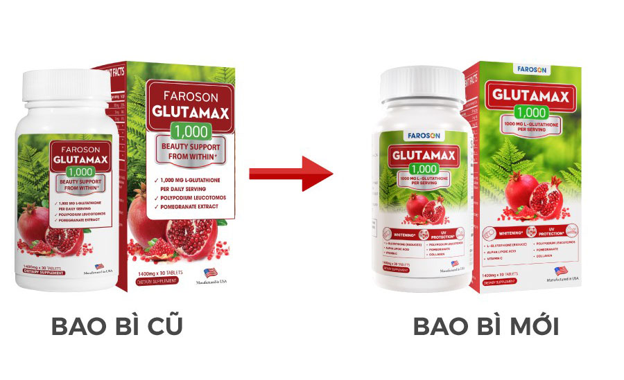 Thực Phẩm Bảo Vệ Sức Khỏe Faroson Glutamax 1000 Beauty Support From Within Hỗ Trợ Làn Da 30 Viên