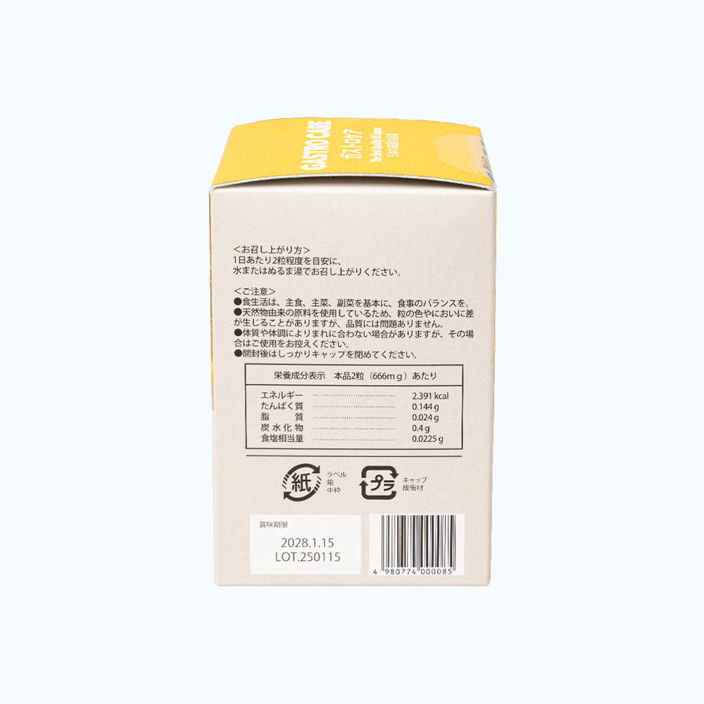 - Lưu ý • Vui lòng đọc kỹ các thành phần trước khi sử dụng. Không sử dụng cho người mẫn cảm, kiêng kị với bất kỳ thành phần nào của sản phẩm. Thực phẩm này không phải là thuốc và không có tác dụng thay thế thuốc chữa bệnh Thông tin sản xuất Xuất xứ: Nhật Bản
