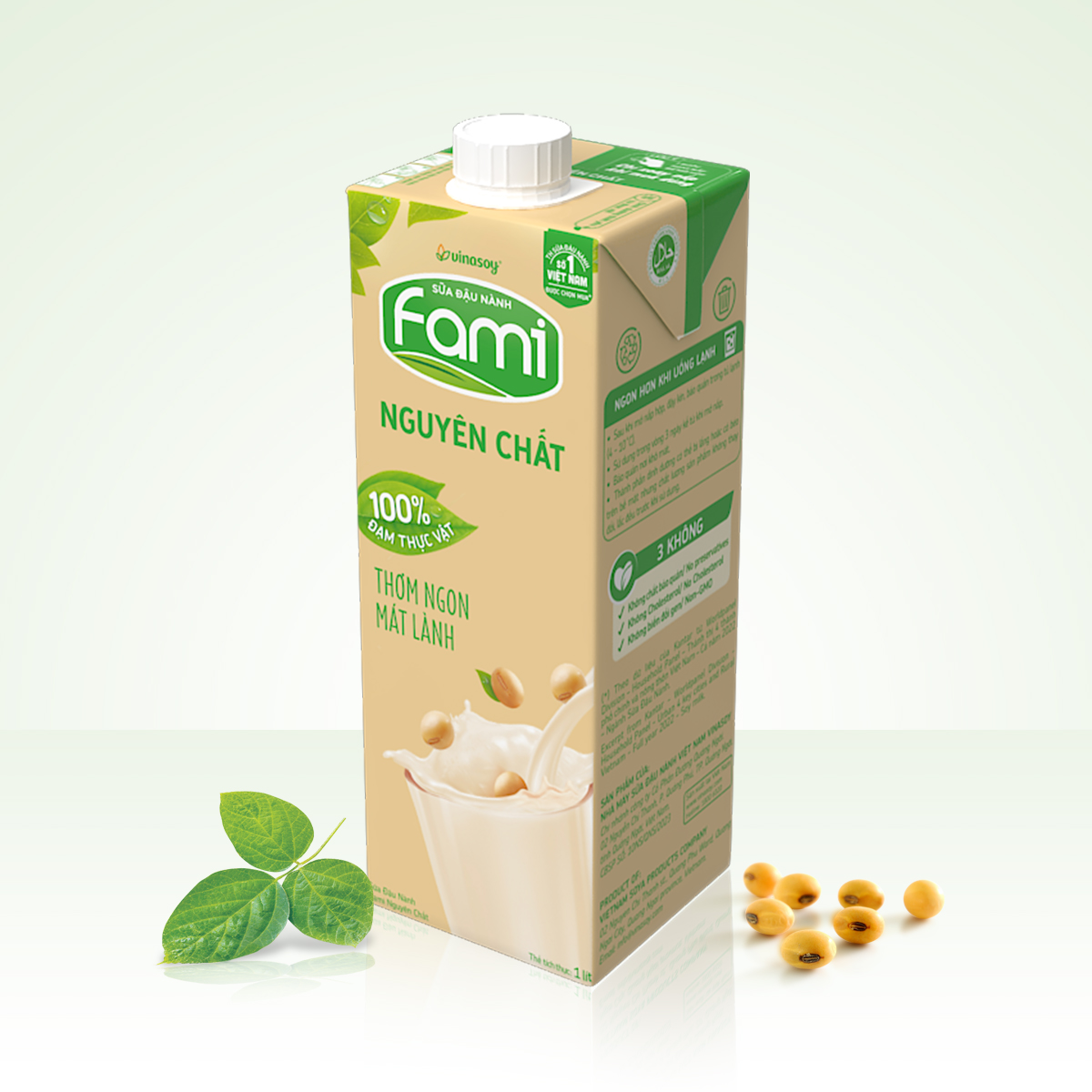 Sữa đậu nành Fami Green Soy Không bổ sung đường MỚI với nguồn dinh dưỡng TRỌN VẸN TỪ TỰ NHIÊN: - 100% dưỡng chất từ hạt đậu nành nội địa - 100% đạm thực vật