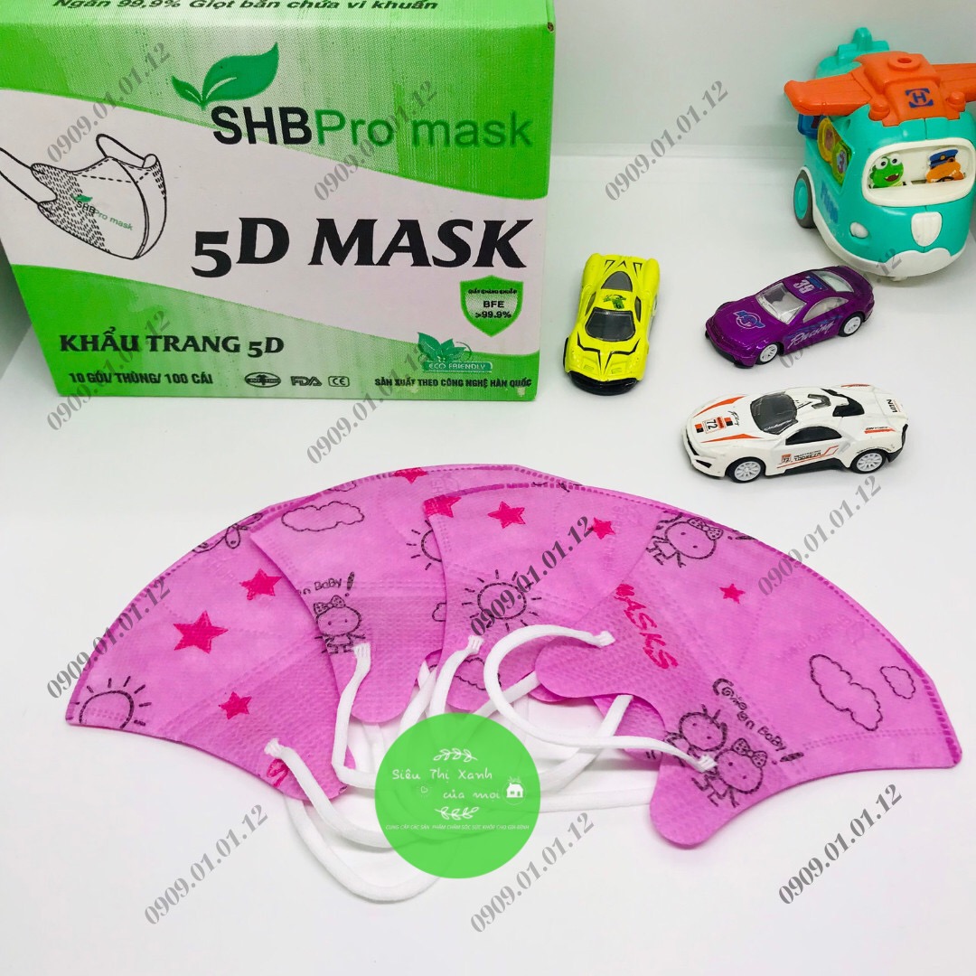 ✨(Thùng 100 cái) Khẩu trang 5D trẻ em SHB Promask chính hãng, 5d cho bé từ 3 - 7 tuổi