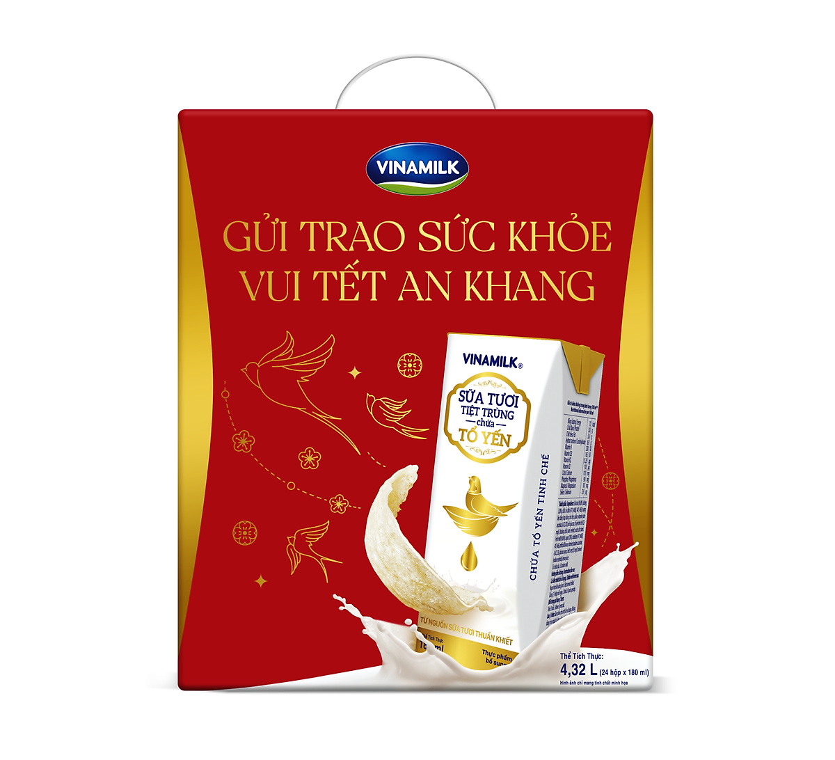 - Vitamin A, D3 & Selen hỗ trợ miễn dịch, tăng cường sức đề kháng. Đây là sản phẩm sữa tươi tiệt trùng có chứa tổ yến cực kỳ bổ dưỡng và thơm ngon. Lốc 4 hộp sữa tươi tiệt trùng chứa tổ yến Vinamilk 180ml là món quà cho sức khoẻ mà Vinamilk dành tặng cho khách hàng, có thể đem biếu, tặng vì bao bì cực sang trọng, giàu dinh dưỡng và thơm ngon