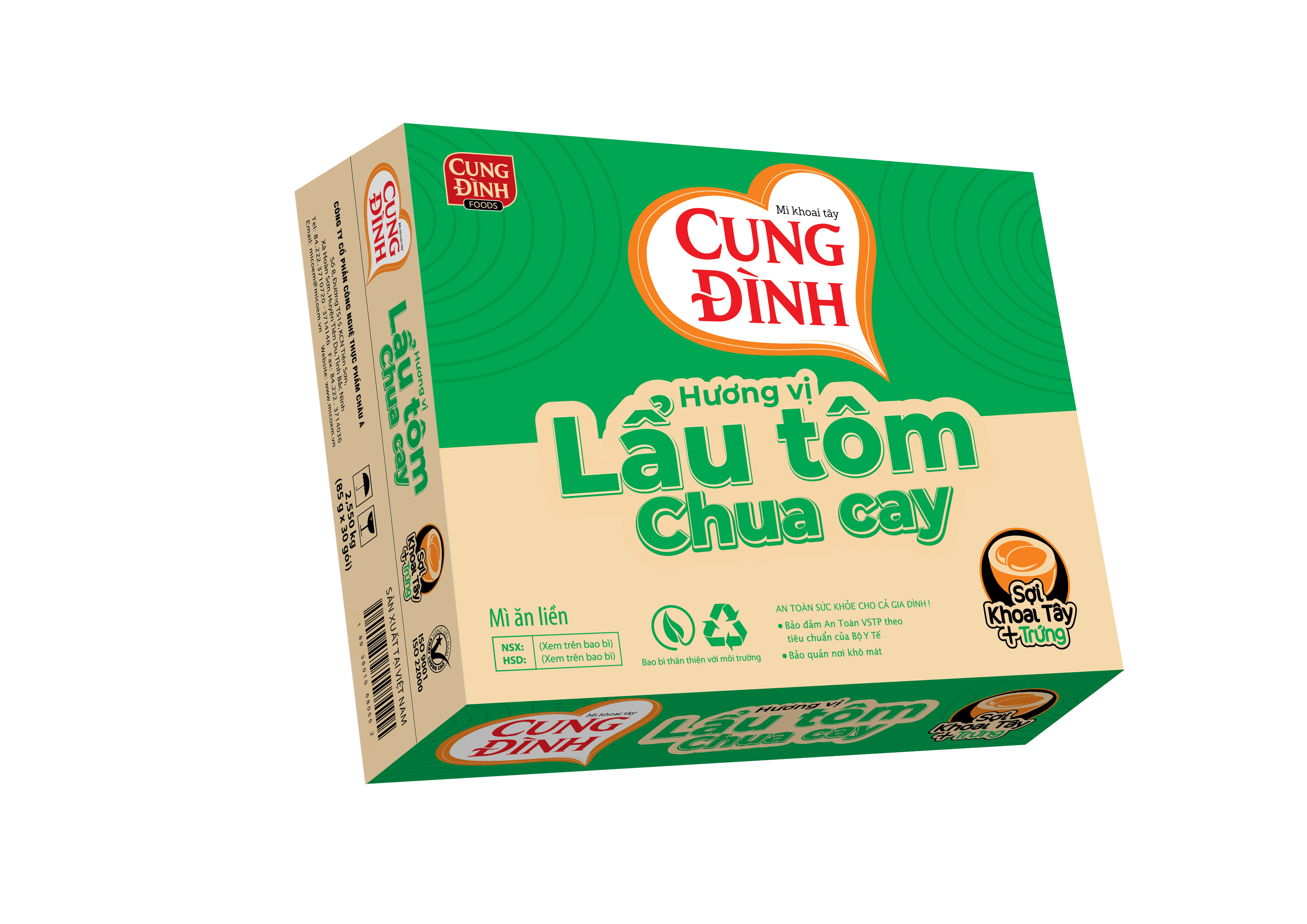- Đóng thùng tiện dụng: Mì Khoai Tây Cung Đình Hương Vị Lẩu Tôm Chua Cay đóng thùng gồm 30 gói rất tiện dụng, thích hợp để các gia đình dự trữ lương thực, hoặc đem theo khi đi dã ngoại, du lịch xa dài ngày.