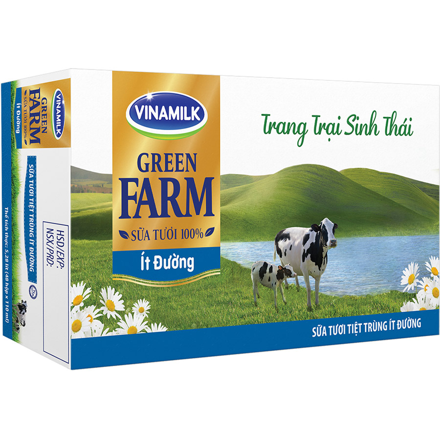- Sữa Tươi Tiệt Trùng Vinamilk Green Farm - Sữa Tươi 100% Ít Đường 110ml cao cấp mới với nguồn sữa tươi 100% thuần khiết từ hệ thống trang trại sinh thái Vinamilk Green Farm