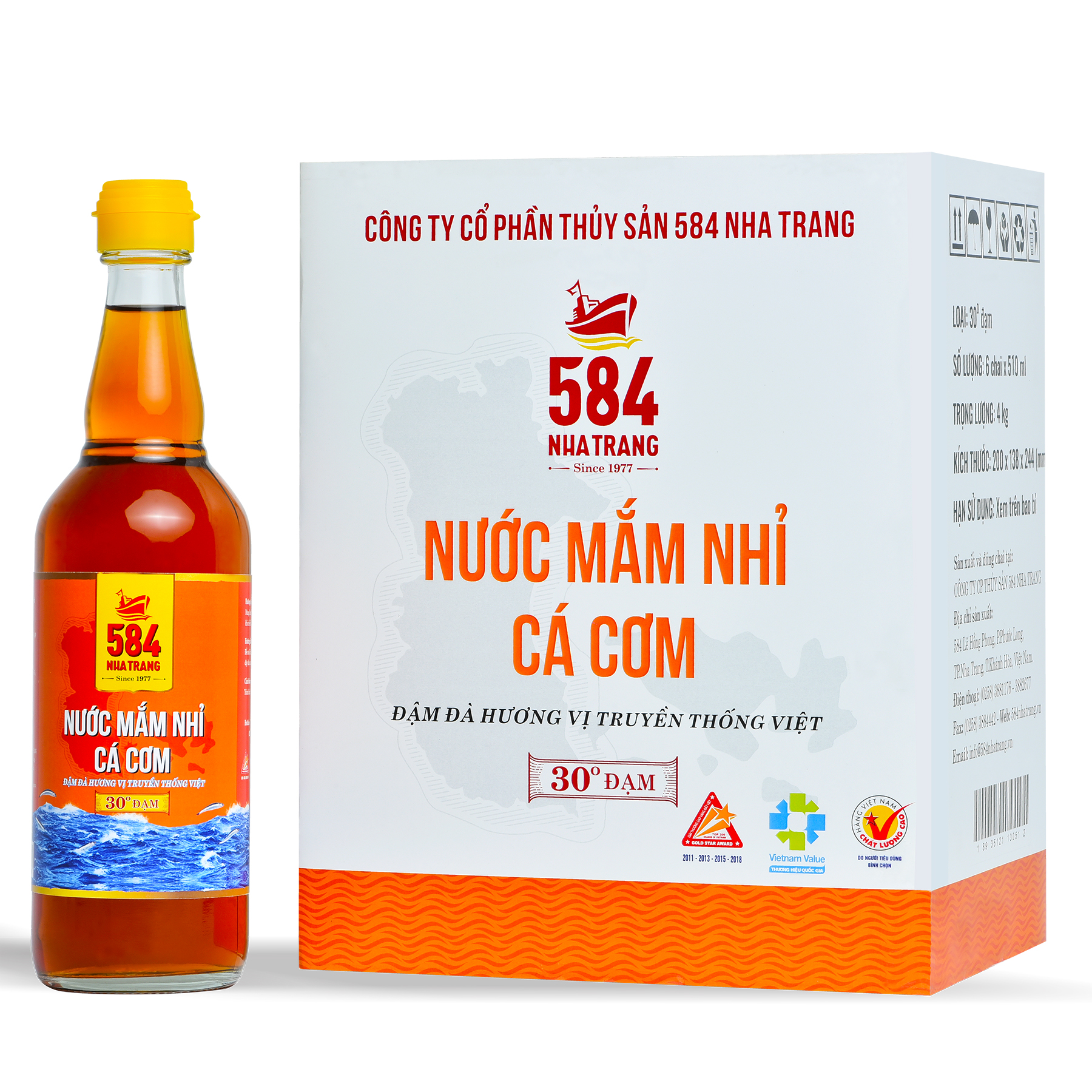 Chi tiết sản phẩm nước mắm 584 Nha Trang 40 độ đạm chai thủy tinh (6 chai 500ml/thùng)