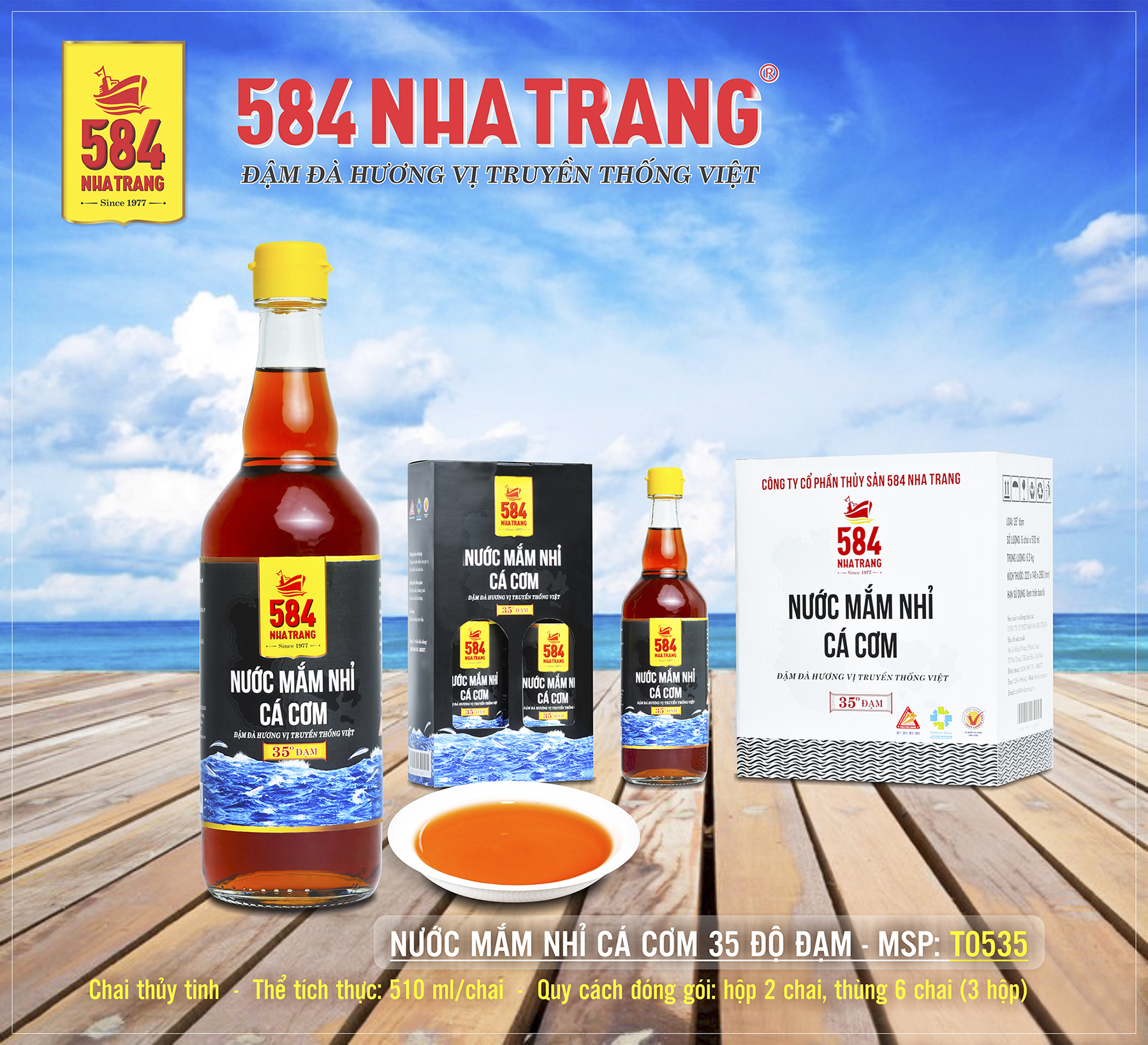 Chi tiết sản phẩm nước mắm 584 Nha Trang 40 độ đạm chai thủy tinh (6 chai 500ml/thùng)