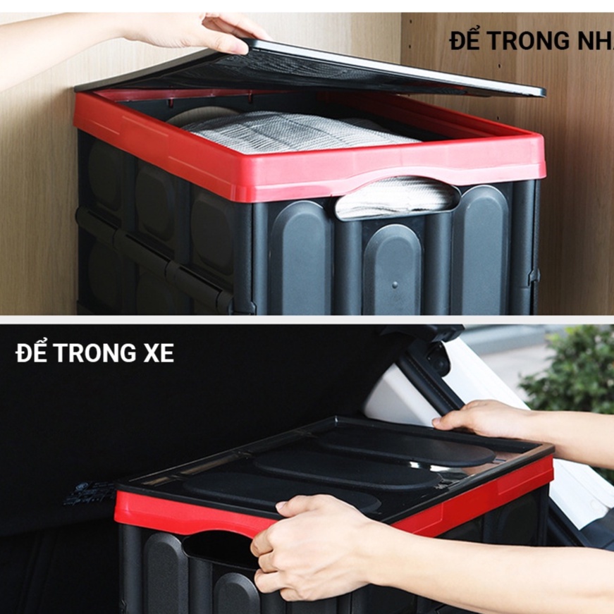 Thùng đựng đồ ô Tô gấp gọn để cốp sau-Thùng nhựa cao cấp để đồ trên xe hơi dung tích 30L và 56L kèm túi lót chống nước THÔNG TIN SẢN PHẨM THÙNG ĐỰNG ĐỒ ĐA NĂNG ️ Màu sắc: Màu đen đỏ. ️ Chất liệu: Nhựa PP nguyên sinh thân thiện với môi trường, tay cầm tròn dễ vận chuyển và sử dụng linh hoạt. ️ Đế thùng dạng lưới, độ ma sát cao, chống mài mòn, có thể chịu nhiệt đến 90*C. ️ Với thiết kế thông minh có thể tháo rời nắp và xếp gọn lại và cất đi khi không cần sử dụng nữa mà không tốn diện tích. ️ Có lớp lót vải PEVA chứa được nước, đi câu về có chỗ để cá không sợ bẩn xe, về quê có thể bắt vài con gà mang lên HN mà không cần phải treo ngoài xe. PHÂN LOẠI THÙNG ĐỰNG ĐỒ SAU CỐP Ô TÔ ️ Trọng lượng: + Loại 30 lít: 1.1 kg + Loại 56 lít: 1.87 kg ️ Kích thước: + Loại 30 lít : 23cm x 43cm x 30 cm khi gấp gọn : 5,2cm x 43cm x 30 cm + Loại 56 lít : 29cm x 53cm x 35 cm khi gấp gọn : 6,2cm x 53cm x 35 cm LỢI ÍCH CỦA THÙNG ĐỰNG ĐỒ GẤP GỌN ️ Giúp bạn cất gọn mọi thứ trên xe gọn gàng chỉ trong một chiếc hộp, tiết kiệm không gian cho xe, không còn phải lo lắng xe ô tô luôn bị bày bừa. ️ Hộp đựng xếp gọn trên ô tô di chuyển dễ dàng và bạn có thể mang đi bất kỳ đâu. ️ Thùng đựng gấp gọn chỉ còn chiều cao 5cm, cất giữ thuận tiện. ️ Thùng đựng đồ để cốp xe hơi thiết kế màu sắc trang nhã, có tay cầm thuận tiện trong việc di chuyển. Các mối nối được cố định bằng đinh thép đảm bảo độ chắc chắn, bền bỉ. ̂́ ̂̀ ̂́ ̛̛̣ ̀ ̣ ̣ ́ ̀ ️ Chất lượng sản phẩm đảm bảo 100% như mô tả. ️ Hỗ trợ đổi trả hàng nếu như do lỗi của nhà sản xuất. ️ Sản phẩm trước khi giao đến khách hàng sẽ được kiểm tra và đóng gói cẩn thận. ️ Luôn sẵn sàng hỗ trợ 24/24 qua về mọi vấn đề liên quan đến chất lượng sản phẩm và dịch vụ.