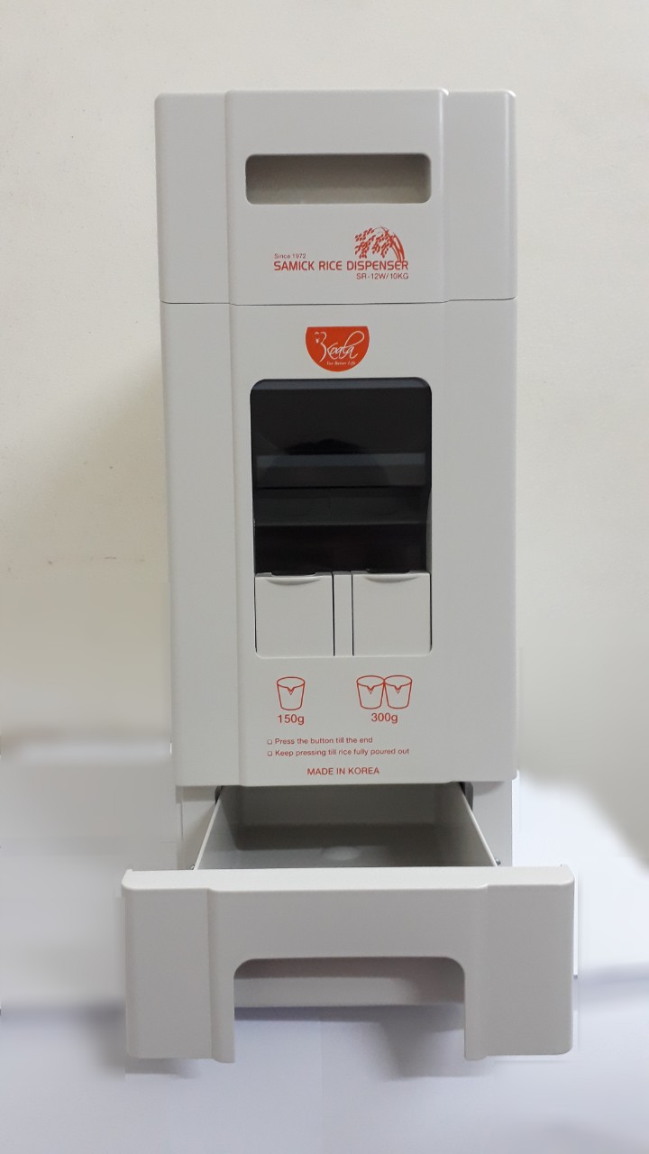 – Thùng đựng gạo SAMICK có khay đổ gạo từ phía trên. Bạn không phải mở nắp để đổ gạo vào thùng chứa. Bạn chỉ cần mở khoá phía trên, khay đổ gạo sẽ ngả xuống. Khi đổ gạo xong bạn chỉ cần đóng khay lại và đóng khoá nắp.