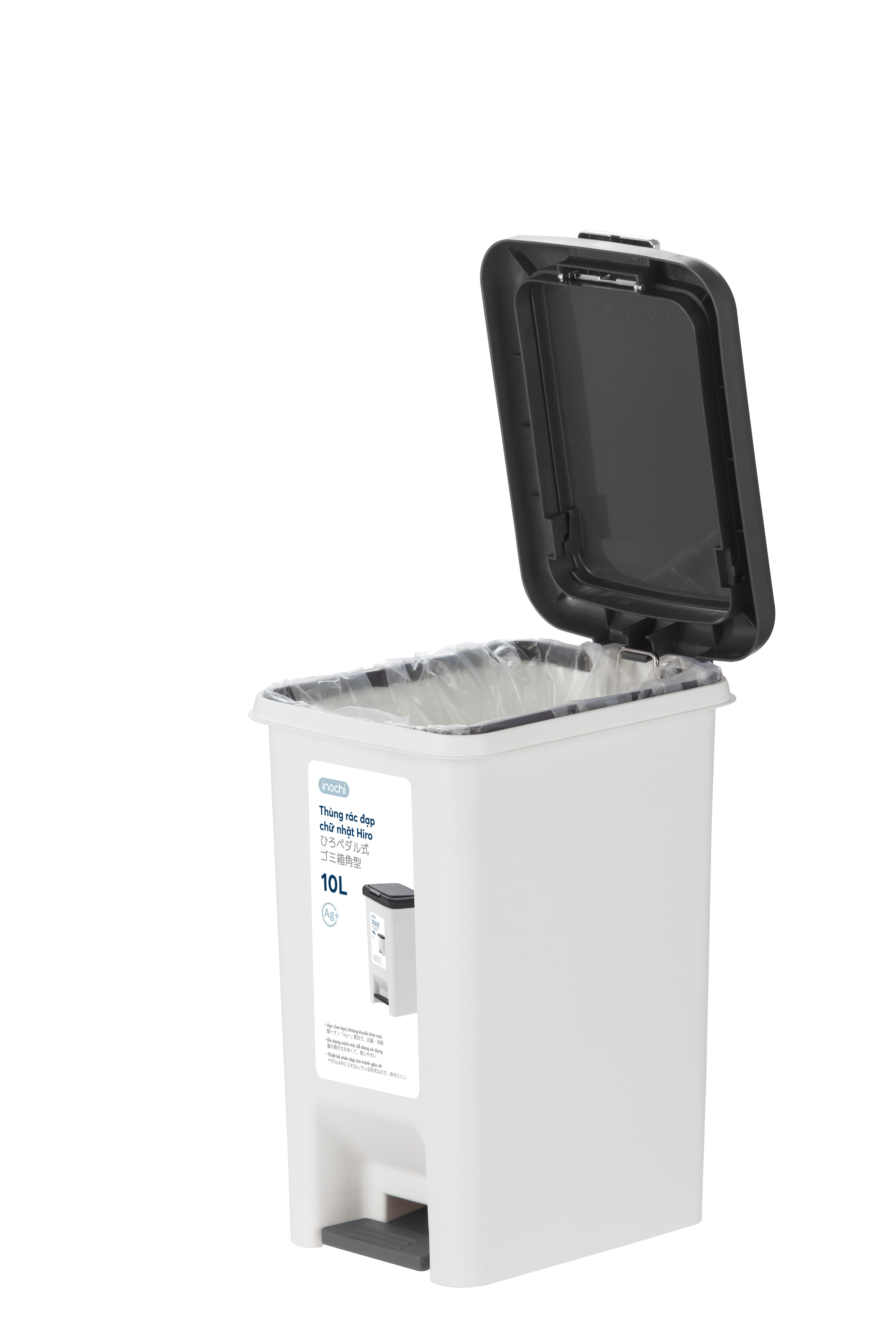 Thùng rác đạp chữ nhật Hiro 30L (Kèm ruột) - Chính hãng INOCHI Mã SP: .0030 Kích thước: 262x384x489 mm Khối lượng: 1540 g Chất liệu: Nhựa PP (Polypropylen) nguyên sinh, hạt màu, inox và