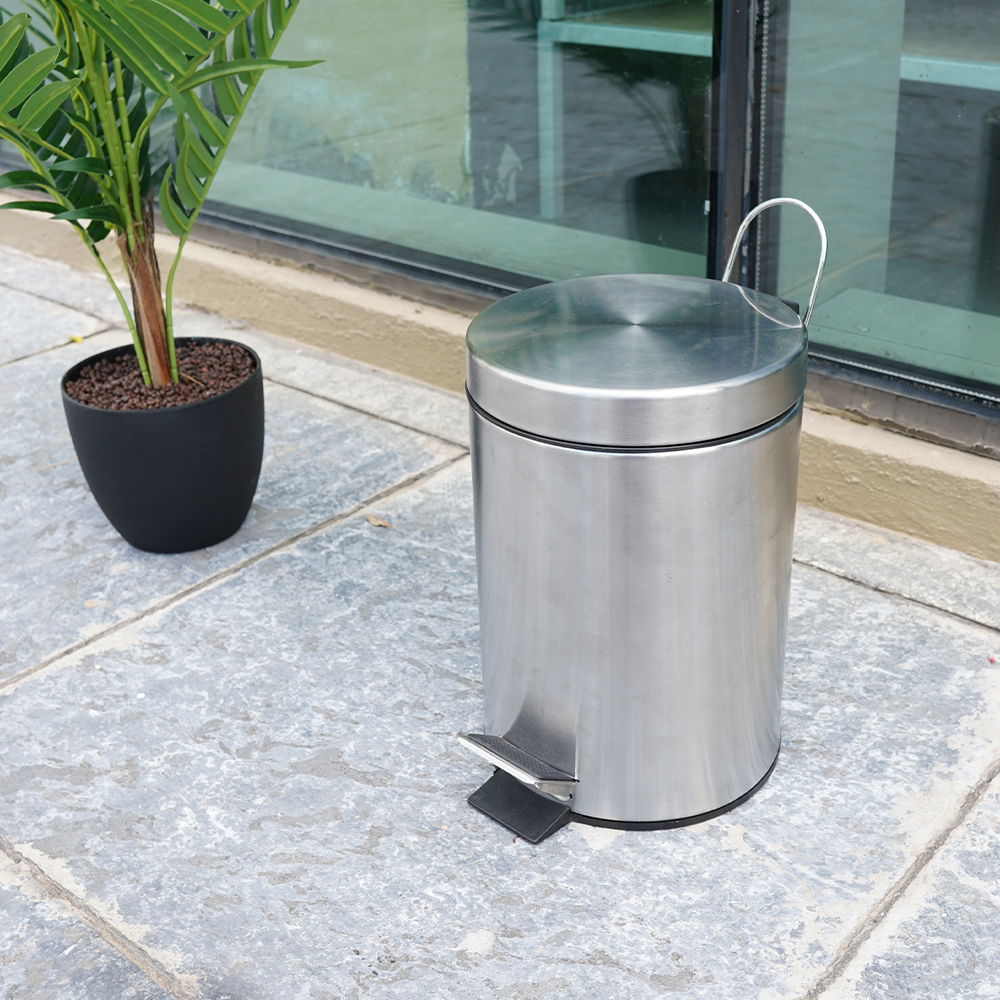 Mua tại TiktokThùng rác 5l, chất liệu thép không gỉ SUS410, màu inox xước, hiệu Trevi Chất liệu: Thép