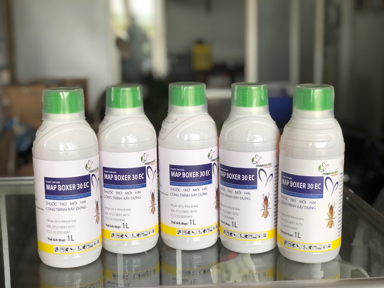 - Xuất xứ: Map Paciffic Singapore -Công dụng: Thuốc chống mối Map Boxer 30 EC diệt trừ được tất cả các loại mối: Mối gỗ ẩm, mối gỗ khô, mối đất và các loại mọt. -Ưu điểm: