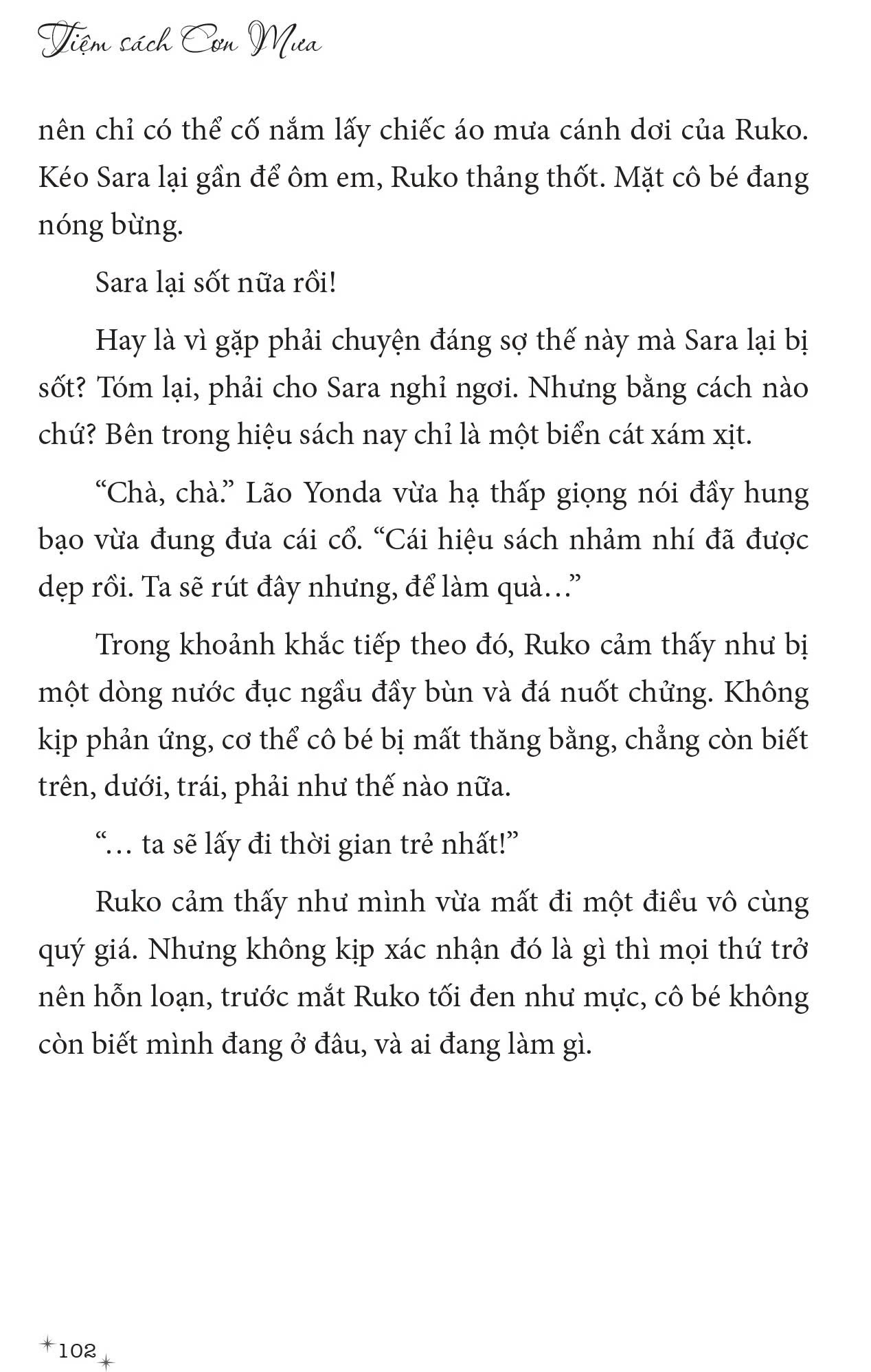 Trong phần hai, Ruko đưa em gái Sara của mình tới thăm Tiệm sách Cơn mưa và gặp gỡ những người bạn yêu quý. Nhưng xui xẻo thay, một vị khách khét tiếng quái đản bất ngờ ghé thăm khiến không chỉ Sara mà còn cả tiệm sách rơi vào hiểm cảnh. Một sứ mệnh giải cứu mới lại được đặt ra. Ruko bé nhỏ dù đã trưởng thành hơn trước, nhưng màn phiêu lưu trong phần hai đã thăng cấp, sự khó khăn và nguy hiểm luôn rình rập cô và mọi người. Ruko và những người bạn đã đi lạc tới vùng đất mới đầy hiểm nguy: từ Cánh đồng Mặt Trăng bị kiểm soát bởi người phụ nữ Akubi đến Rừng hươu cao cổ đầy những răng nanh ánh sáng bay vèo vèo sắc nhọn như lưỡi dao...