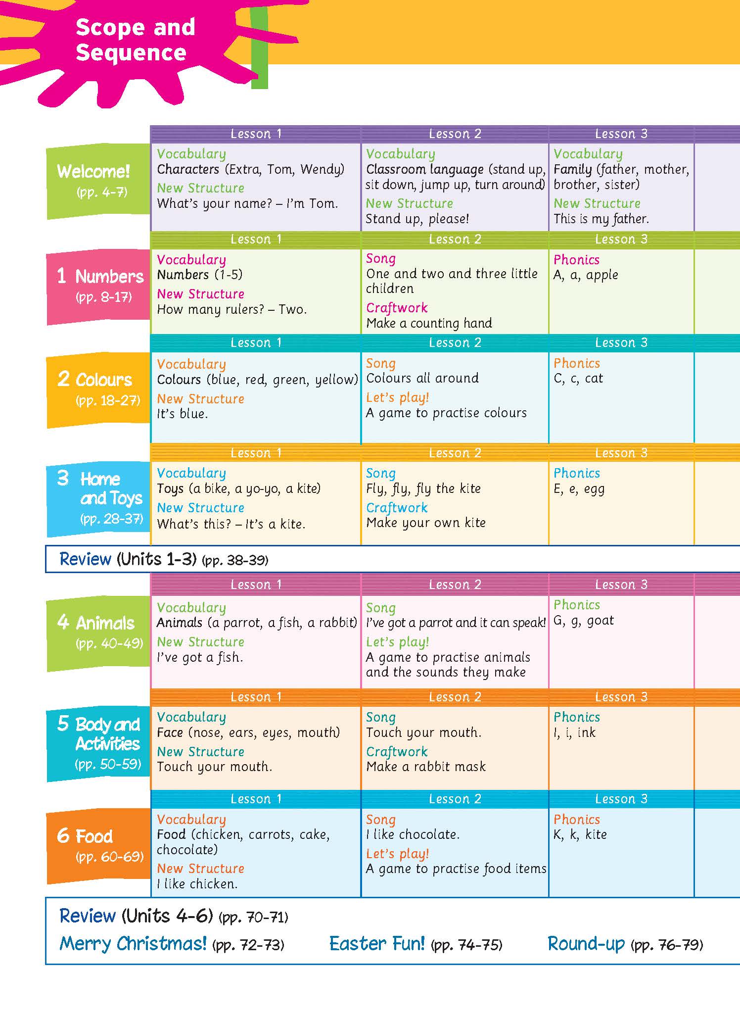 Sách : Learning English - Tiếng Anh Lớp 2 & Lớp 3 (7 - 9 Tuổi ) Nội Dung : - Bảng mục lục: Chỉ rõ các mục tiêu chính và trọng tâm của mỗi