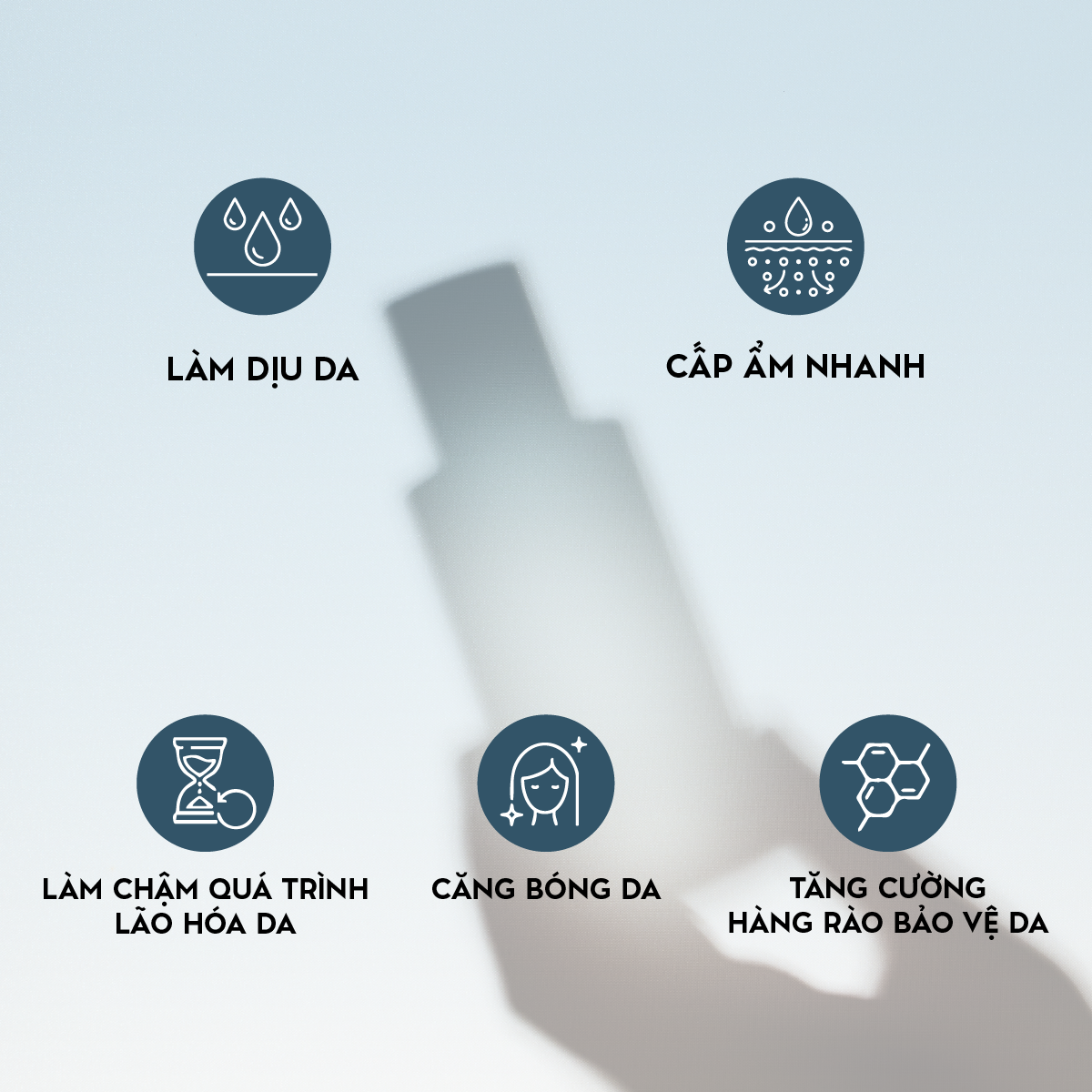 hỗ trợ cấp ẩm và phục hồi làm dịu da, giúp da tươi sáng, rạng rỡ mà không gây bí hay bết dính da. Sản phẩm thiết kế với dạng đầu xịt thông minh, bạn