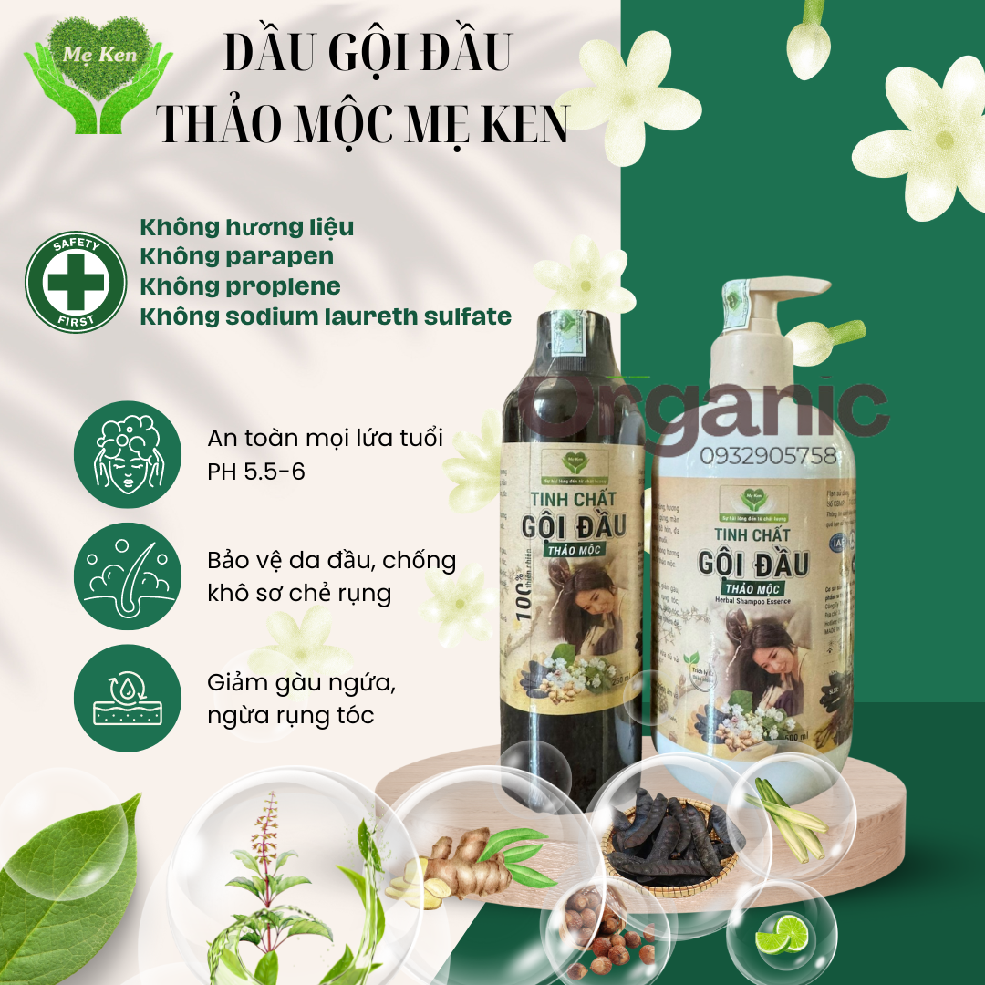 TINH CHẤT CÔ ĐẶC THẢO MỘC DƯỠNG TÓC MẸ KEN hoàn toàn khác biệt… Kết hợp tất cả những dược liệu quý và tinh dầu giúp tóc mềm mướt ngay lần gội đầu tiên mà lại thơm thoang thoảng mùi hoa bưởi, hoa nhài.