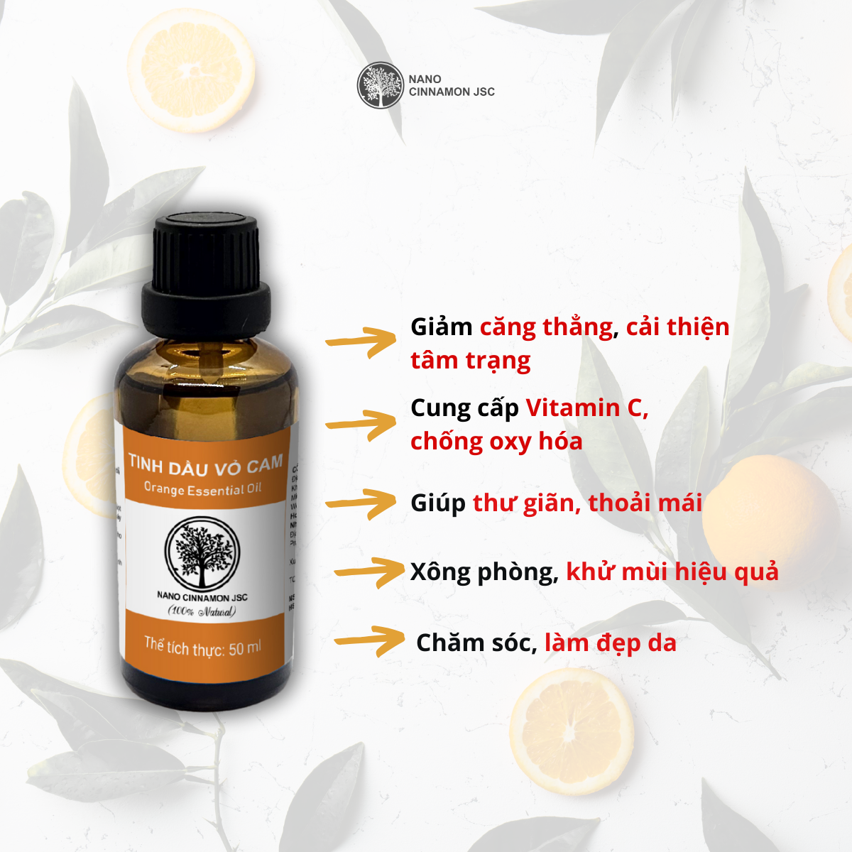 ✨Tinh dầu Cam thiên nhiên nguyên chất Nano Cinnamon 10/30/50/100ml - thư giãn, giàu Vitamin C, chống oxy hóa, thanh lọc. Có kiểm định, chiết xuất thiên nhiên
