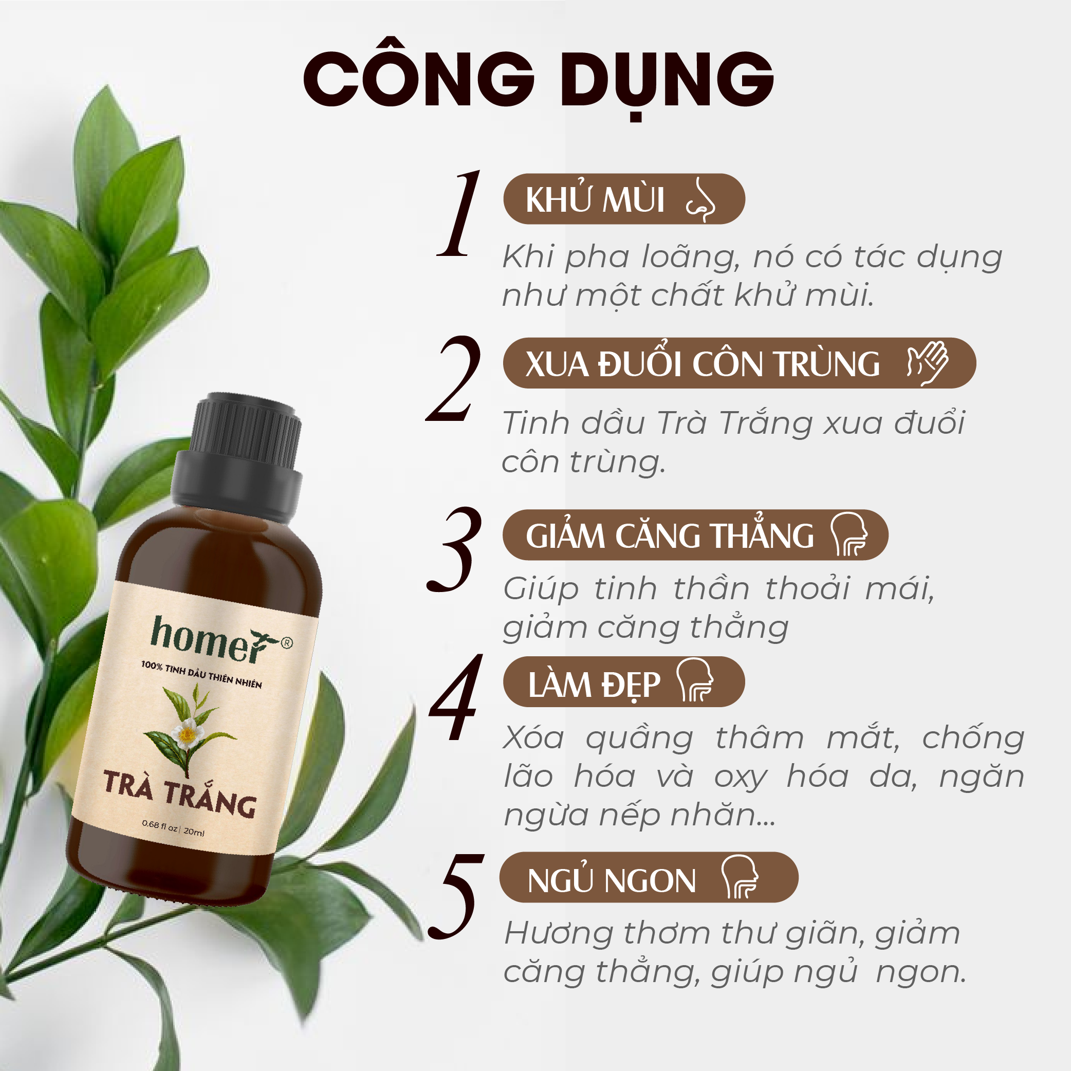 ✨Tinh Dầu Trà Trắng Homer 100ml - Chính Hãng, Đạt Chuẩn Kiểm Định Cao Cấp - Tinh Dầu Xông Thơm Phòng, Thư Giãn, Khử Mùi hiệu quả