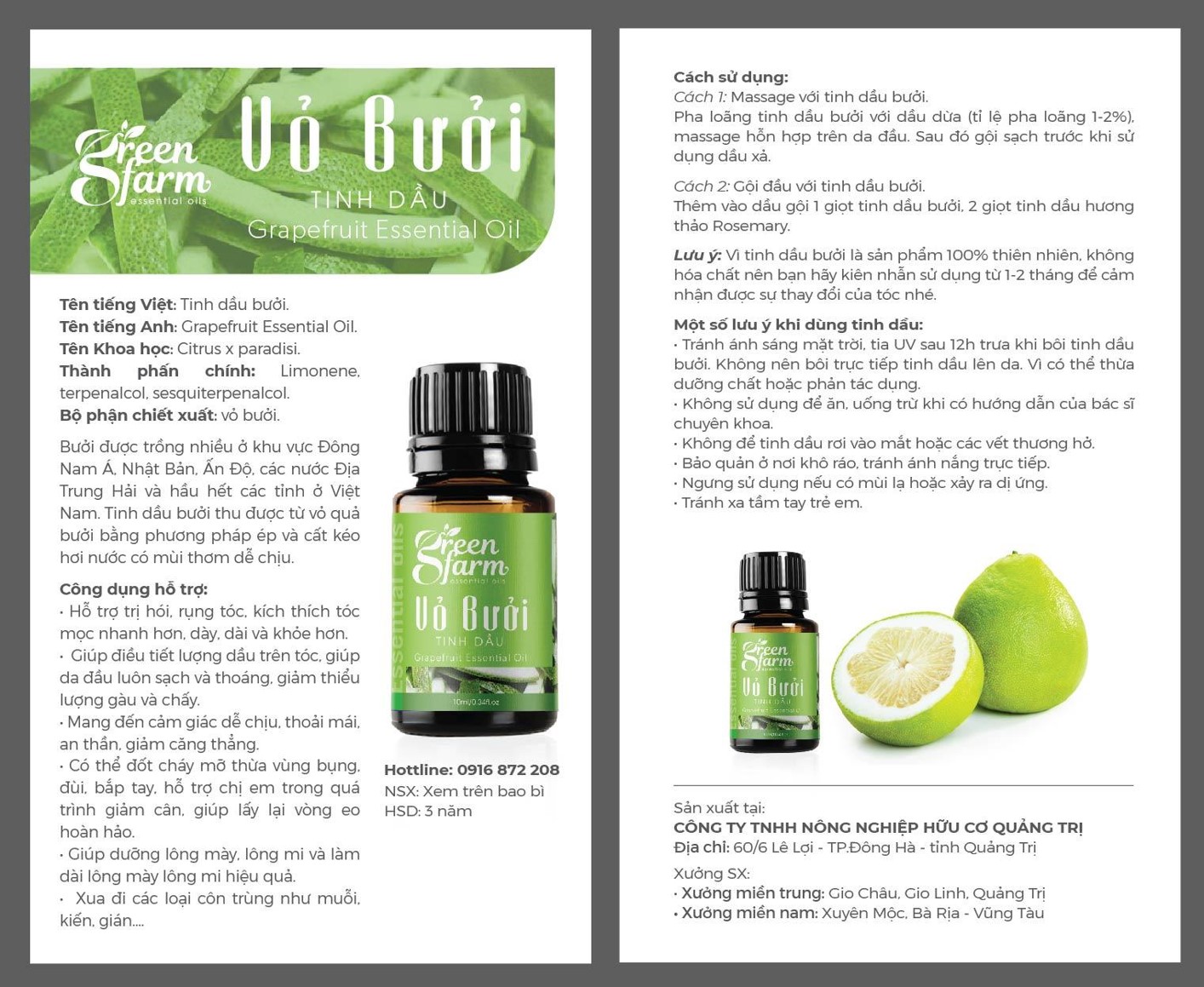 Tinh Dầu Vỏ Bưởi Grapefruit Greenfarm