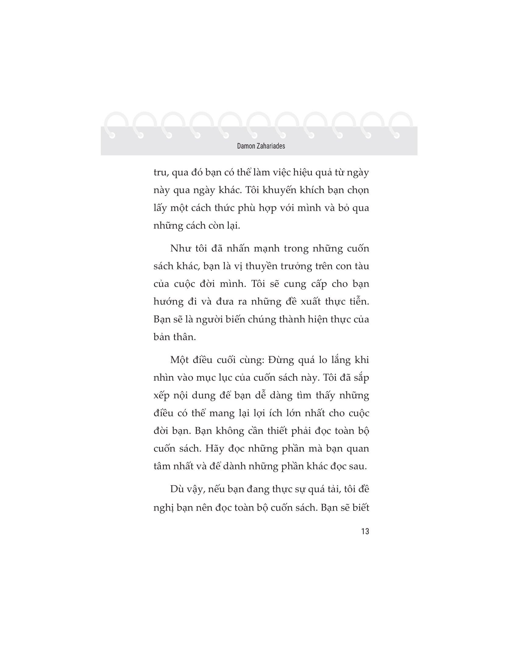 - Cách duy trì trơn tru hệ thống quản lý nhiệm vụ của riêng bạ và nhiều điều thú vị khác xoay quanh đề tài quản lý thời gian và tối ưu năng suất làm việc! Nếu như bạn đã mệt mỏi hết ngày này sang ngày khác vì không thể xử lý tốt những công việc cứ ngày càng chồng chất, bây giờ chính là lúc thay đổi. Hãy tìm ra chiến lược đúng đắn để sắp xếp cuộc đời m.ình, tận hưởng niềm vui khi năng suất tăng lên, stress biến mất và có thêm nhiều thời gian tự do để làm những điều m.ình yêu thích! Về tác giả: Damon Zahariades là chuyên gia về năng suất, Damon đã dành nhiều năm ở Corporate America, sở hữu một công ty về tiếp thị nội dung của riêng m.ình và tạo ra các hướng dẫn hành động để giúp mọi người tăng năng suất công việc.